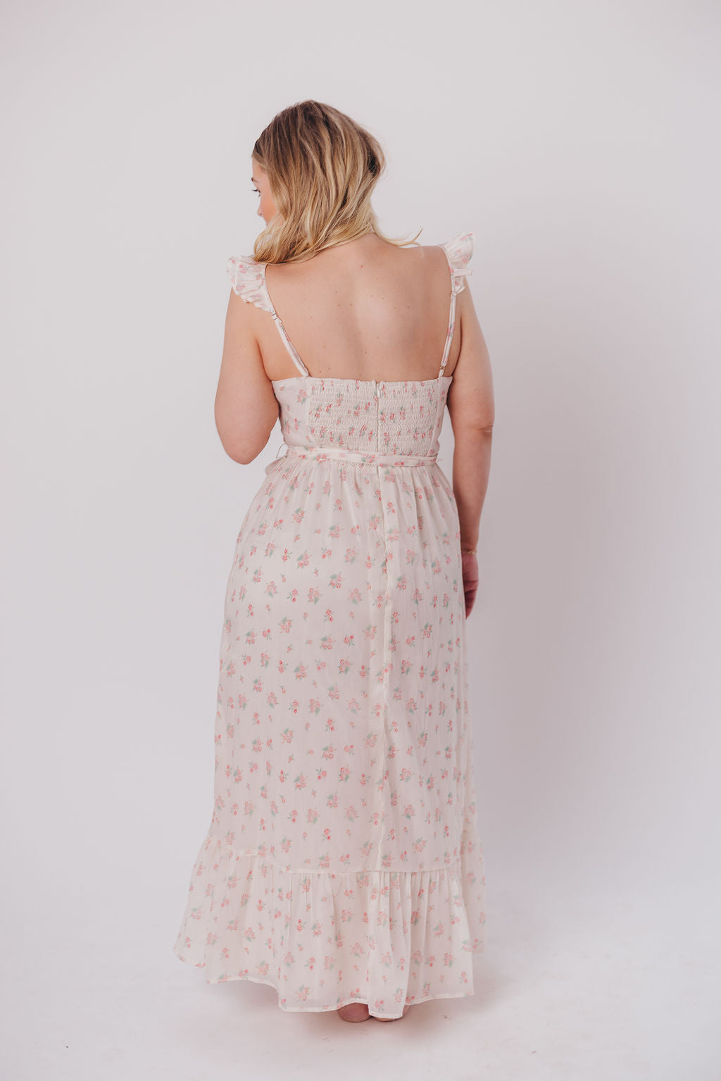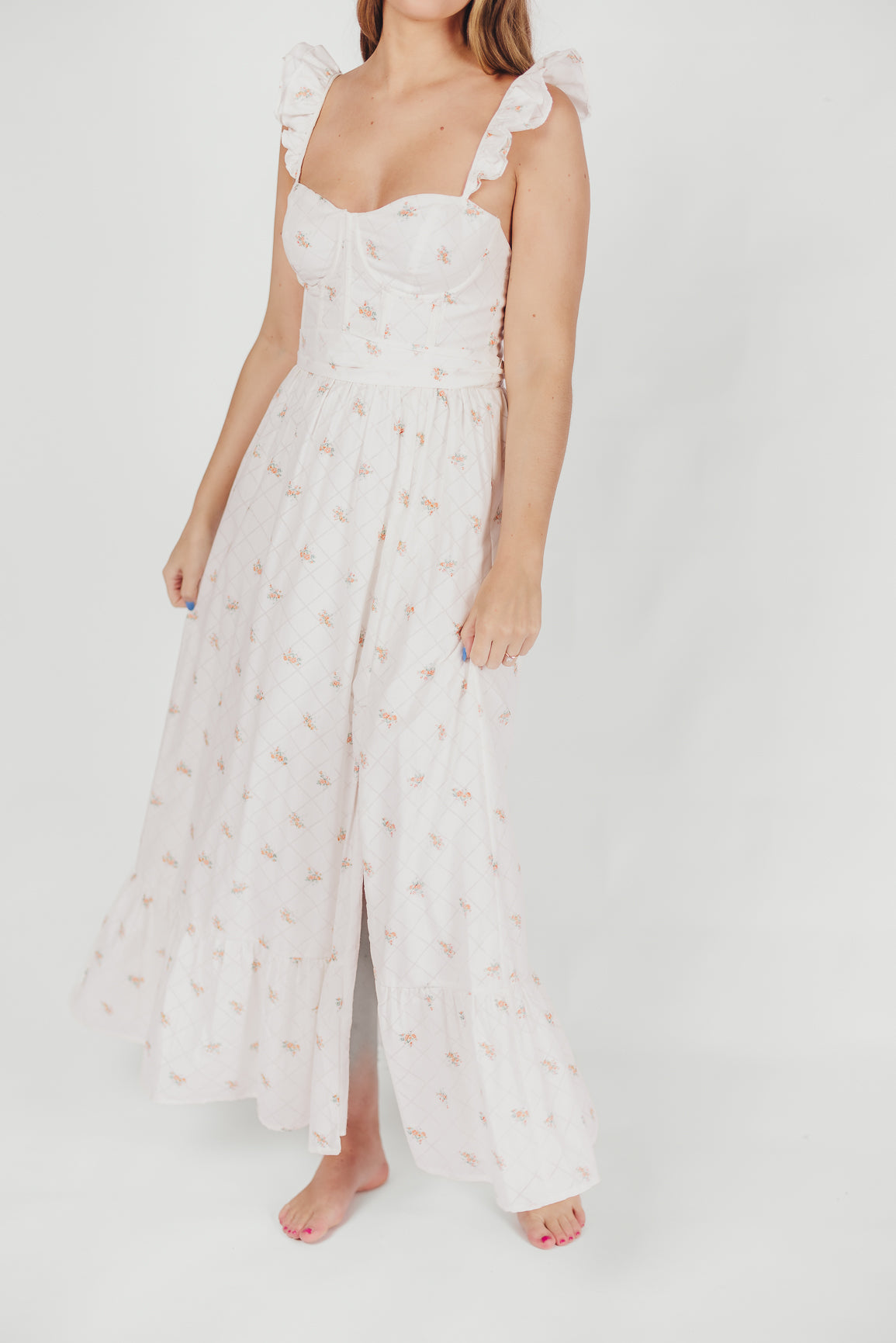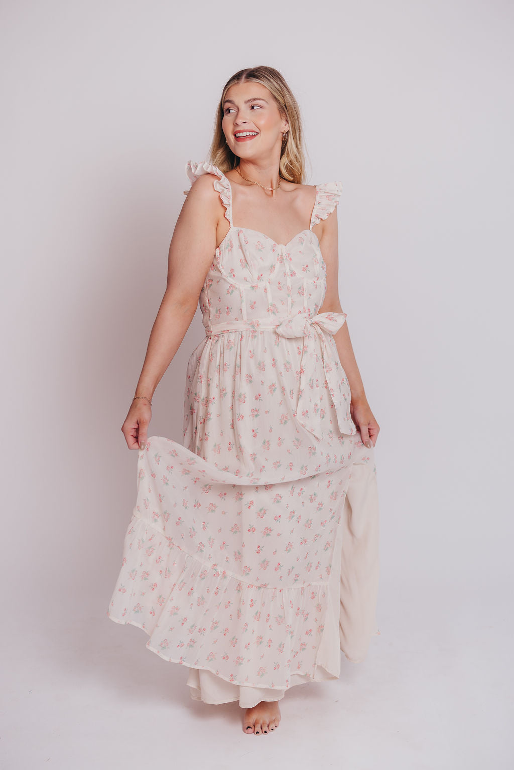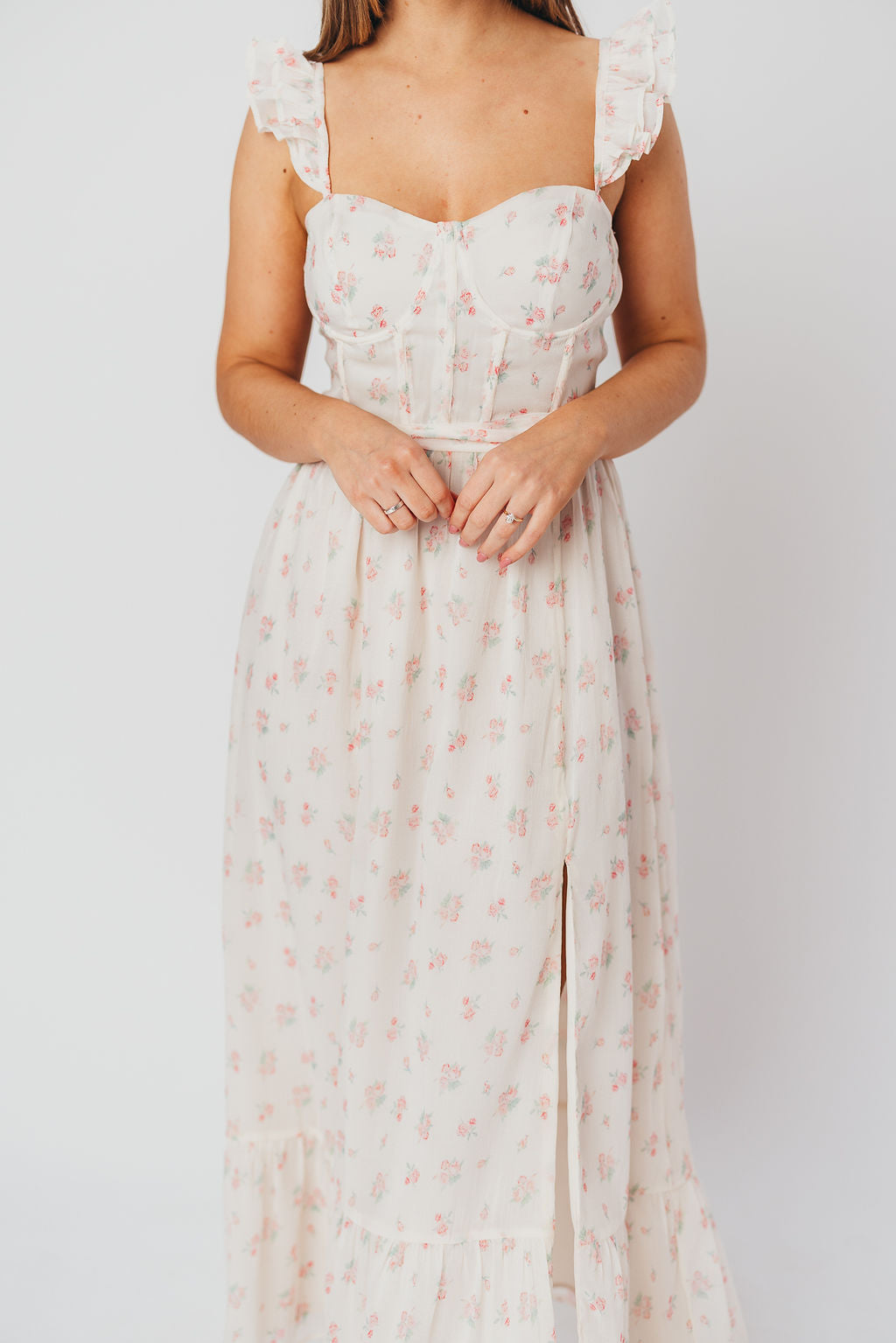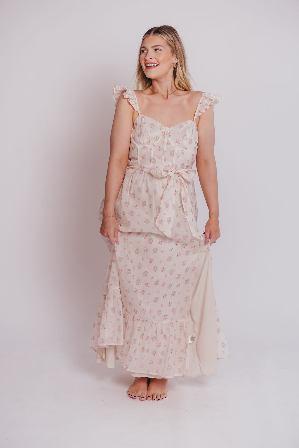 Rosamund Bustier-Style Maxi Dress in Blush Pink Floral...