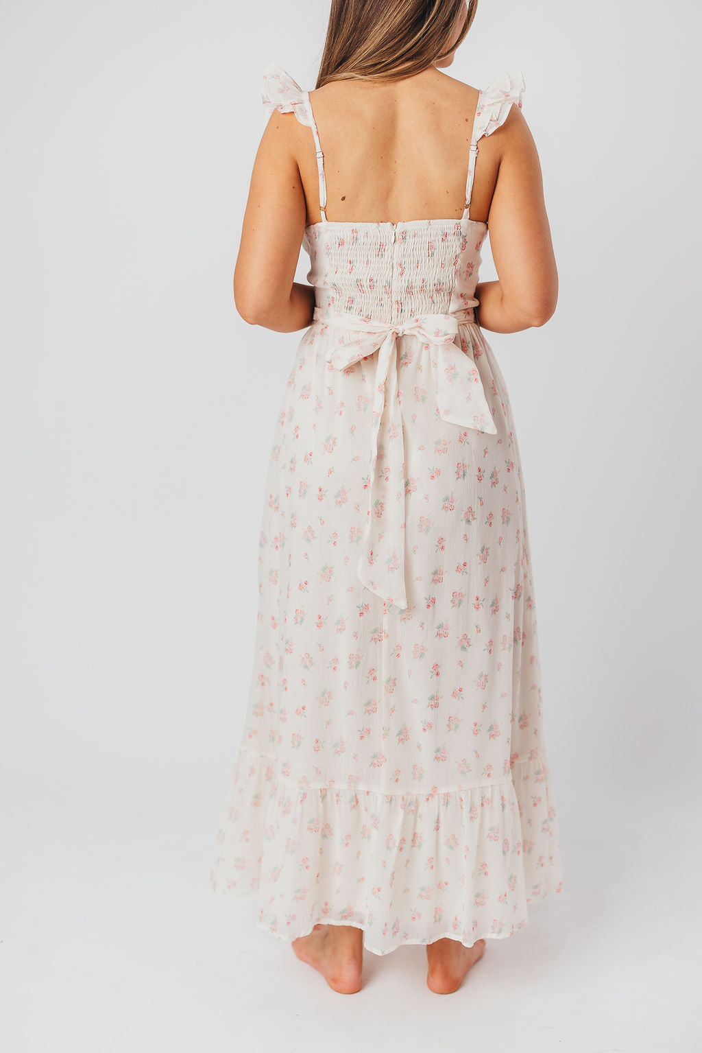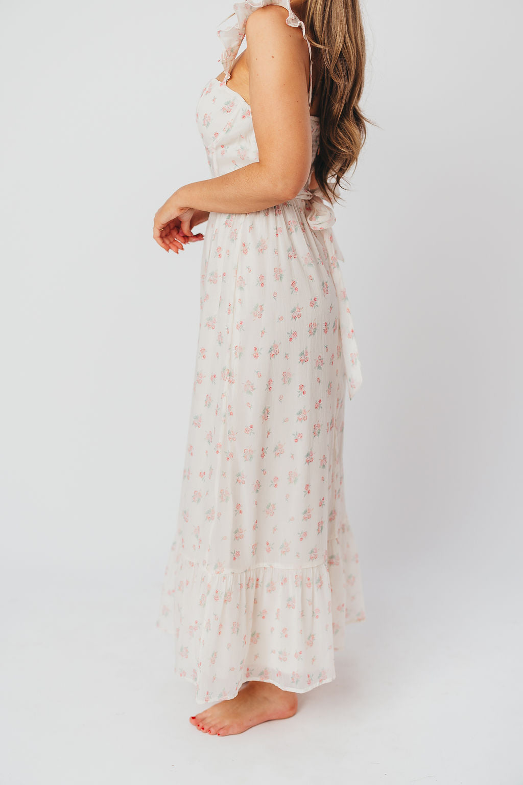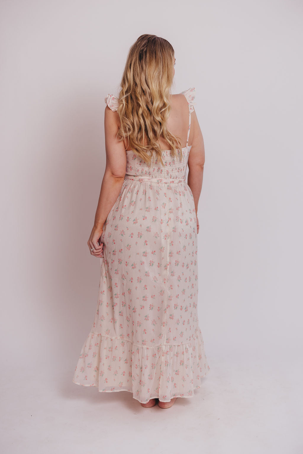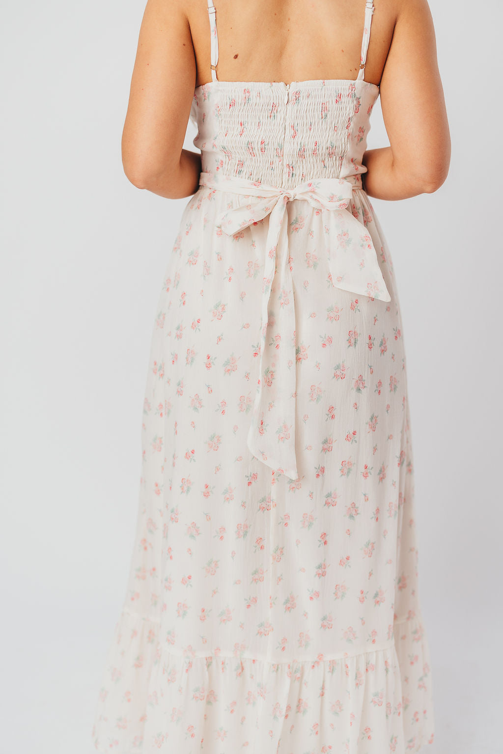 Rosamund Bustier-Style Maxi Dress in Blush Pink Floral...