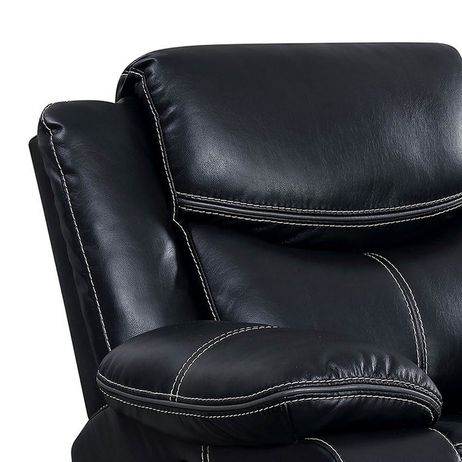Leatherette Power Recliner With Cup Holders & Storage, Black