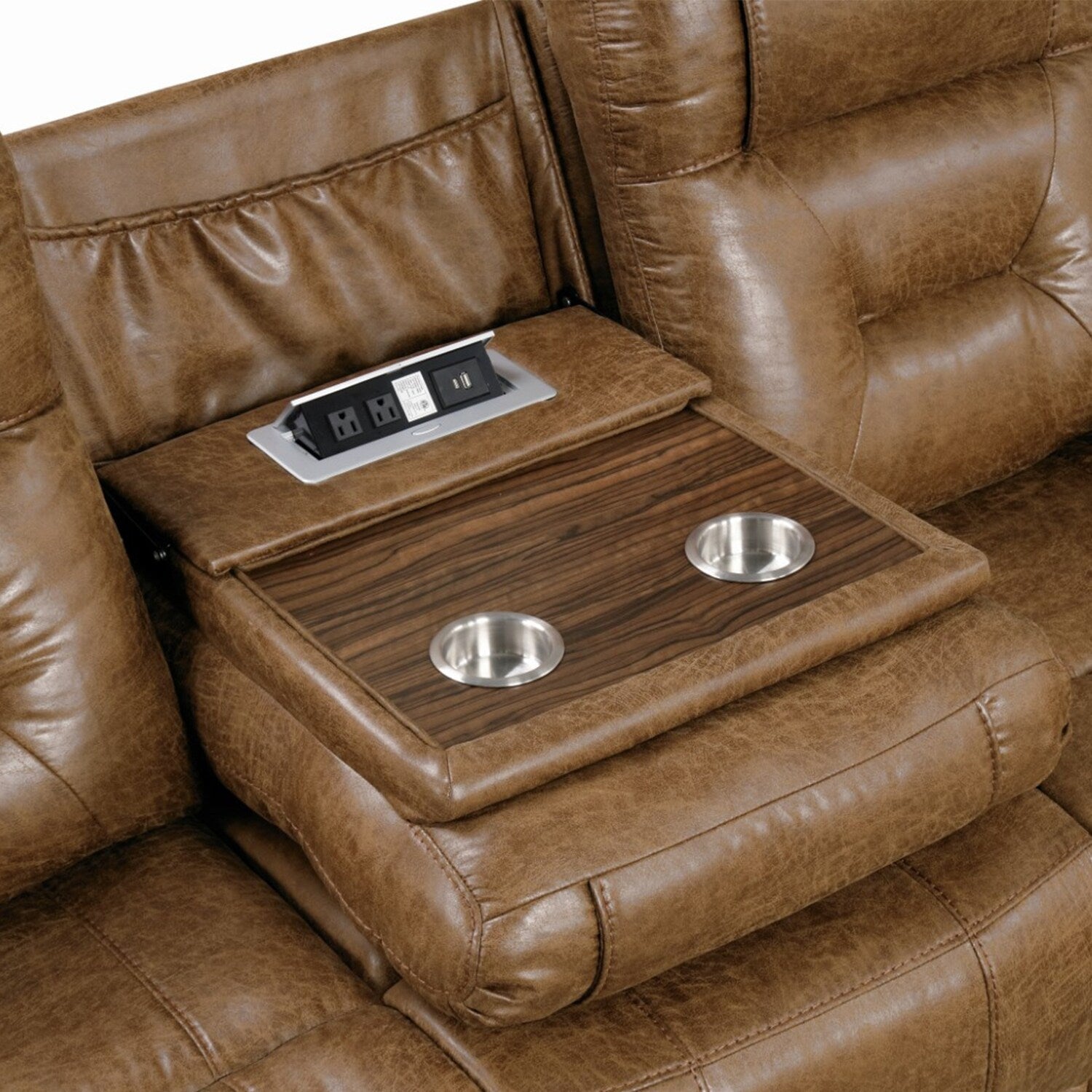Leatherette Upholstered Sofa with Manual Reclining in Brown