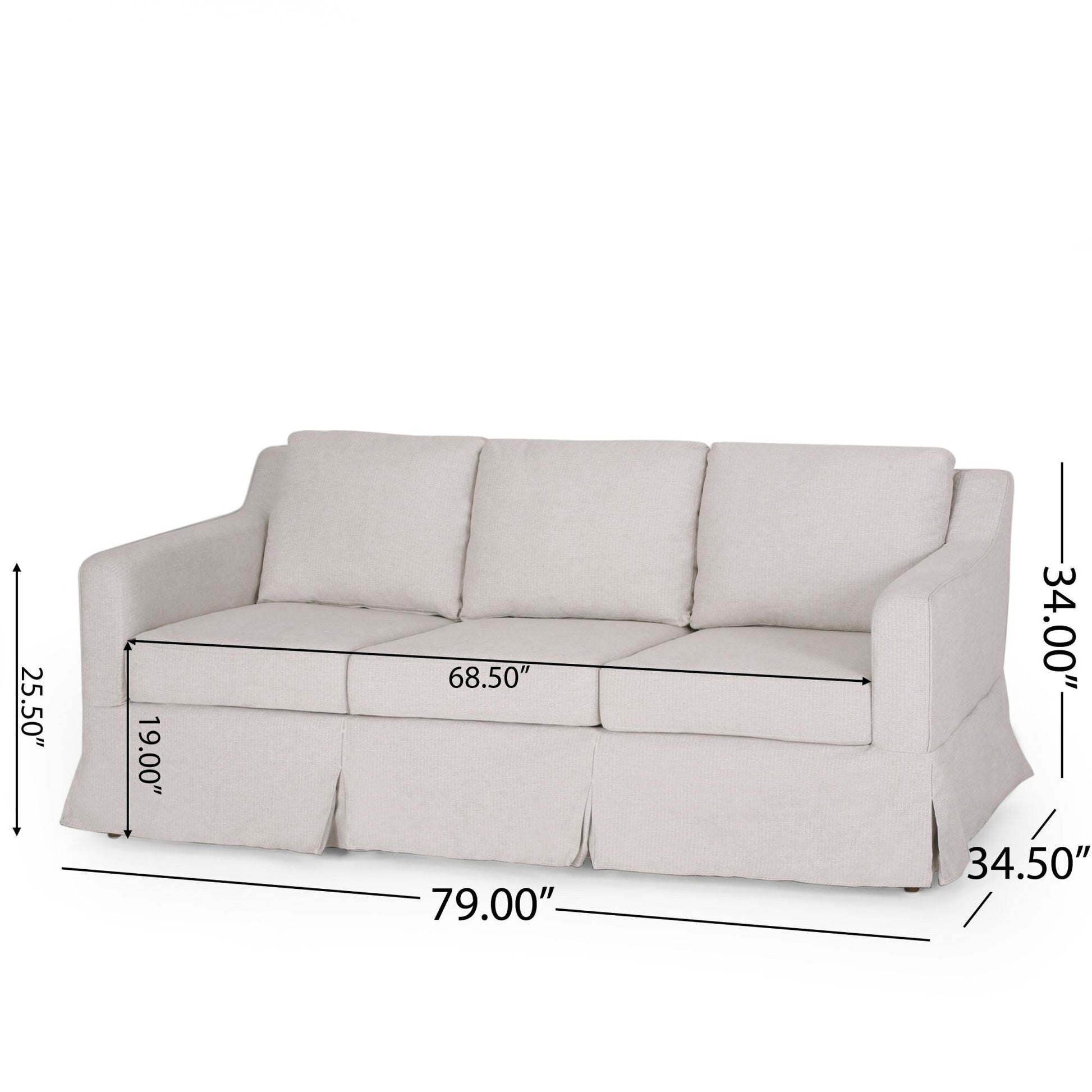 Light Beige 79 Striped Fabric 3-seater Recessed Arms...