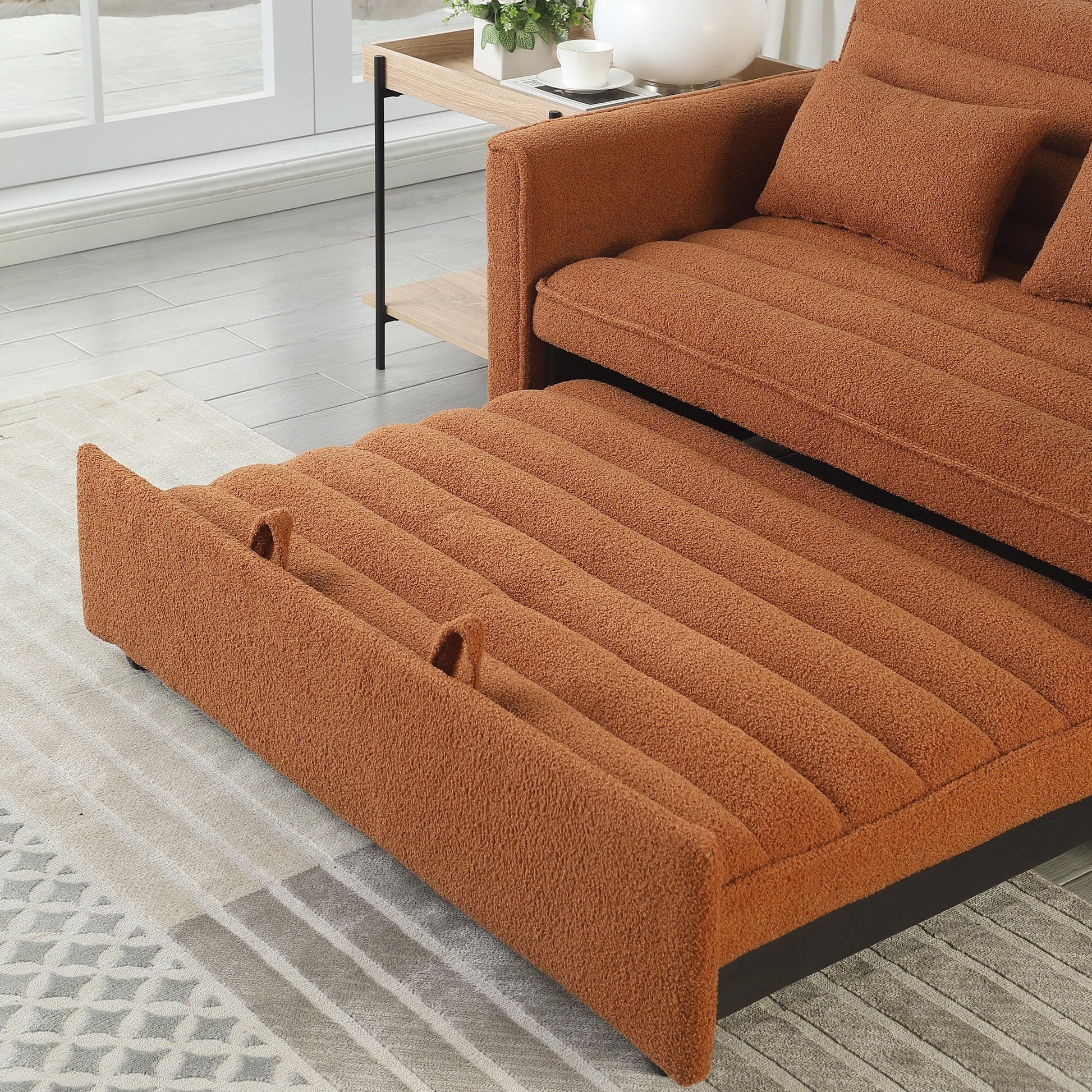 Light Brown Boucle Loveseat Convertible Pull-Out Sofa Bed