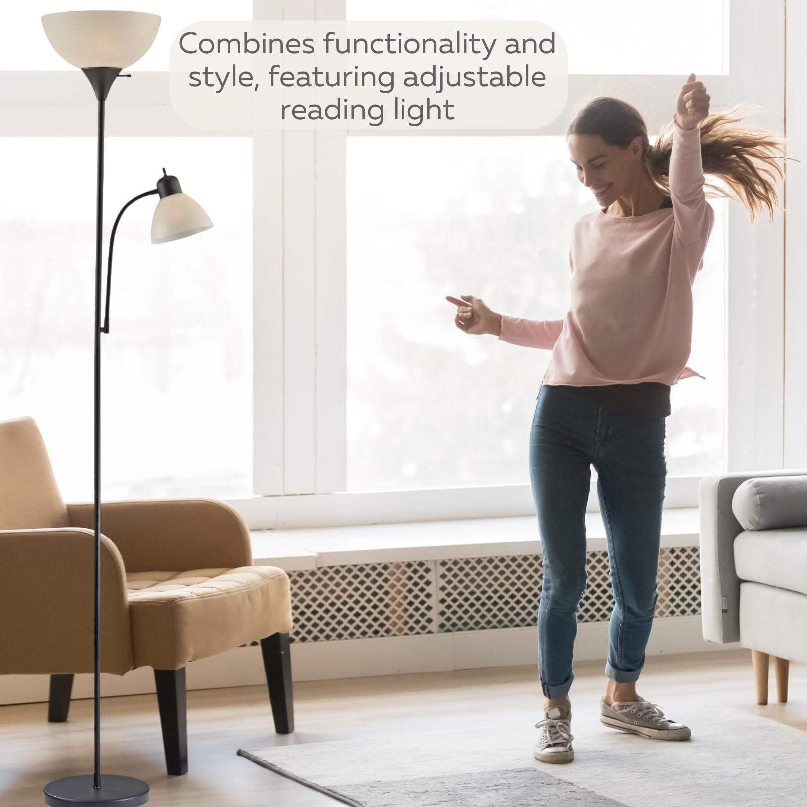 LIGHTACCENTS White Floor Lamp with Opal...