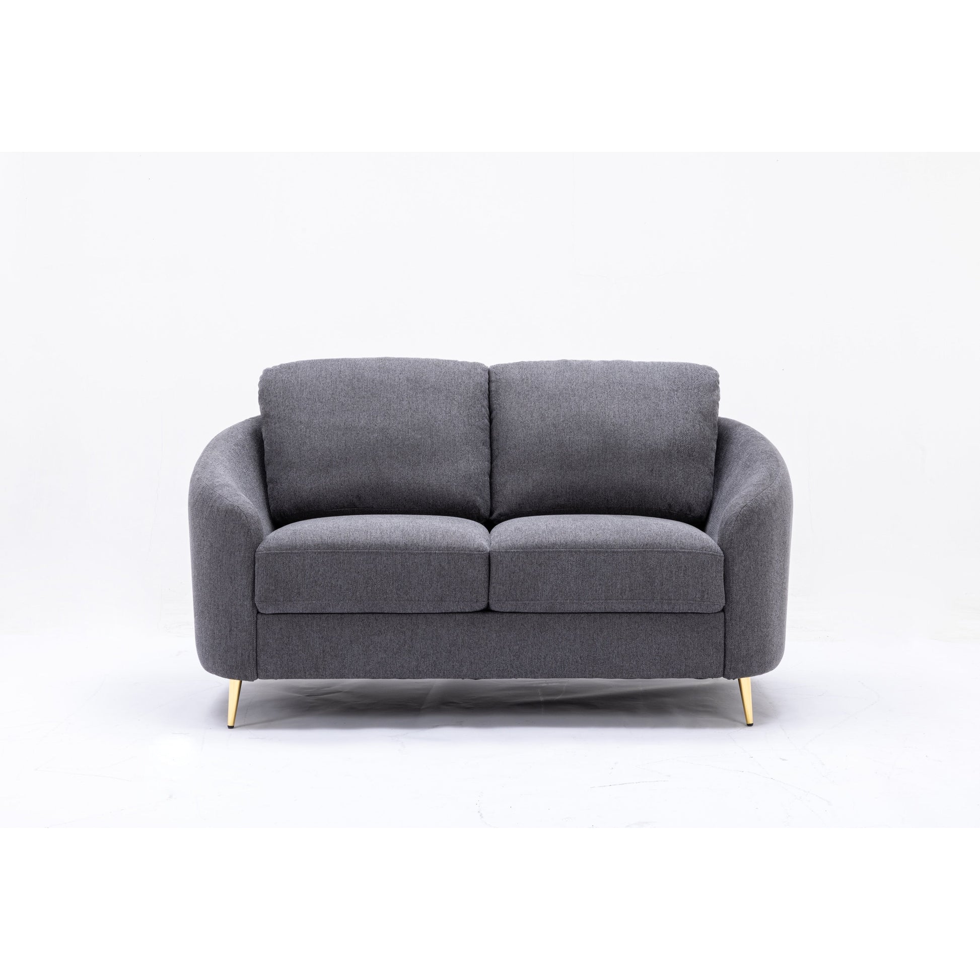 Linen Loveseat Sofa with Gold Metal Legs and Plush Seat Cushions