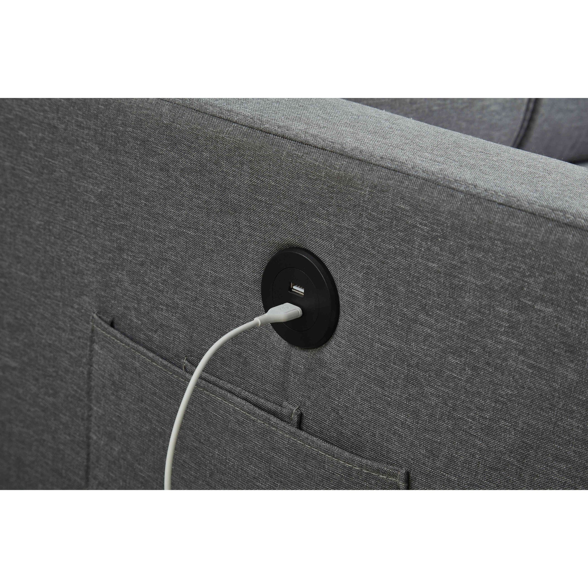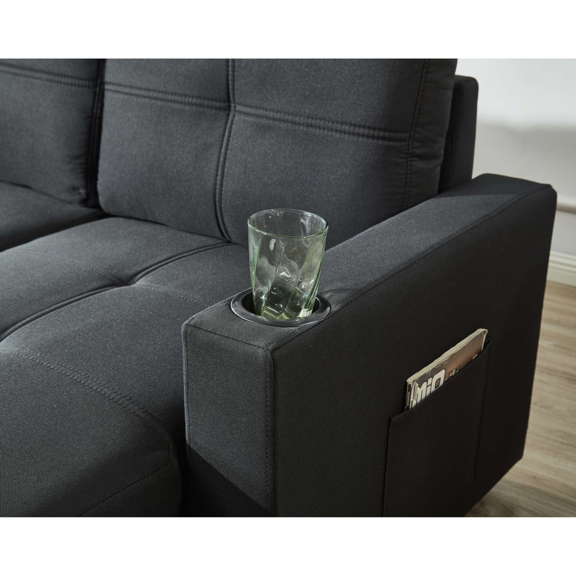 Linen Sectional Sofa Reversible Chaise with Pull out...