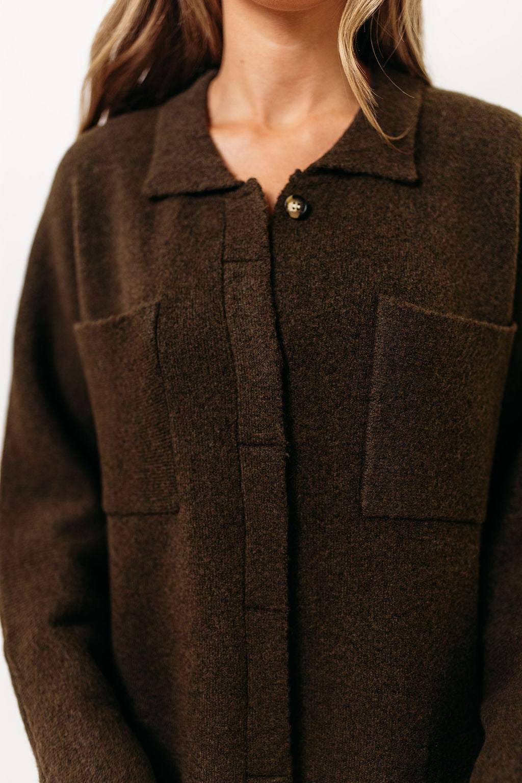 Dagny Hidden Button Maxi Jacket in Tapenade