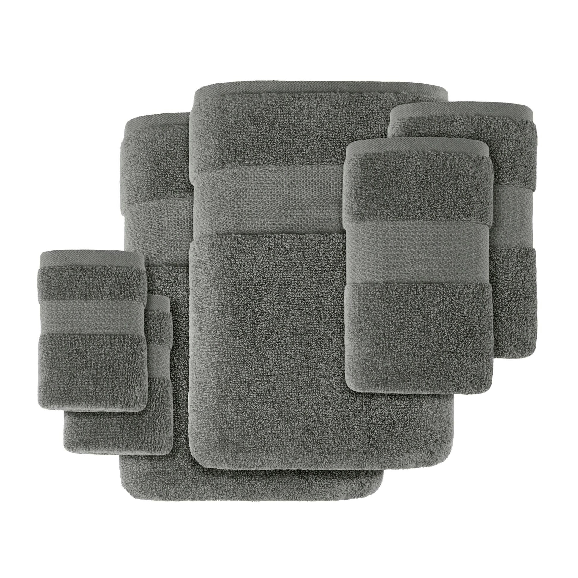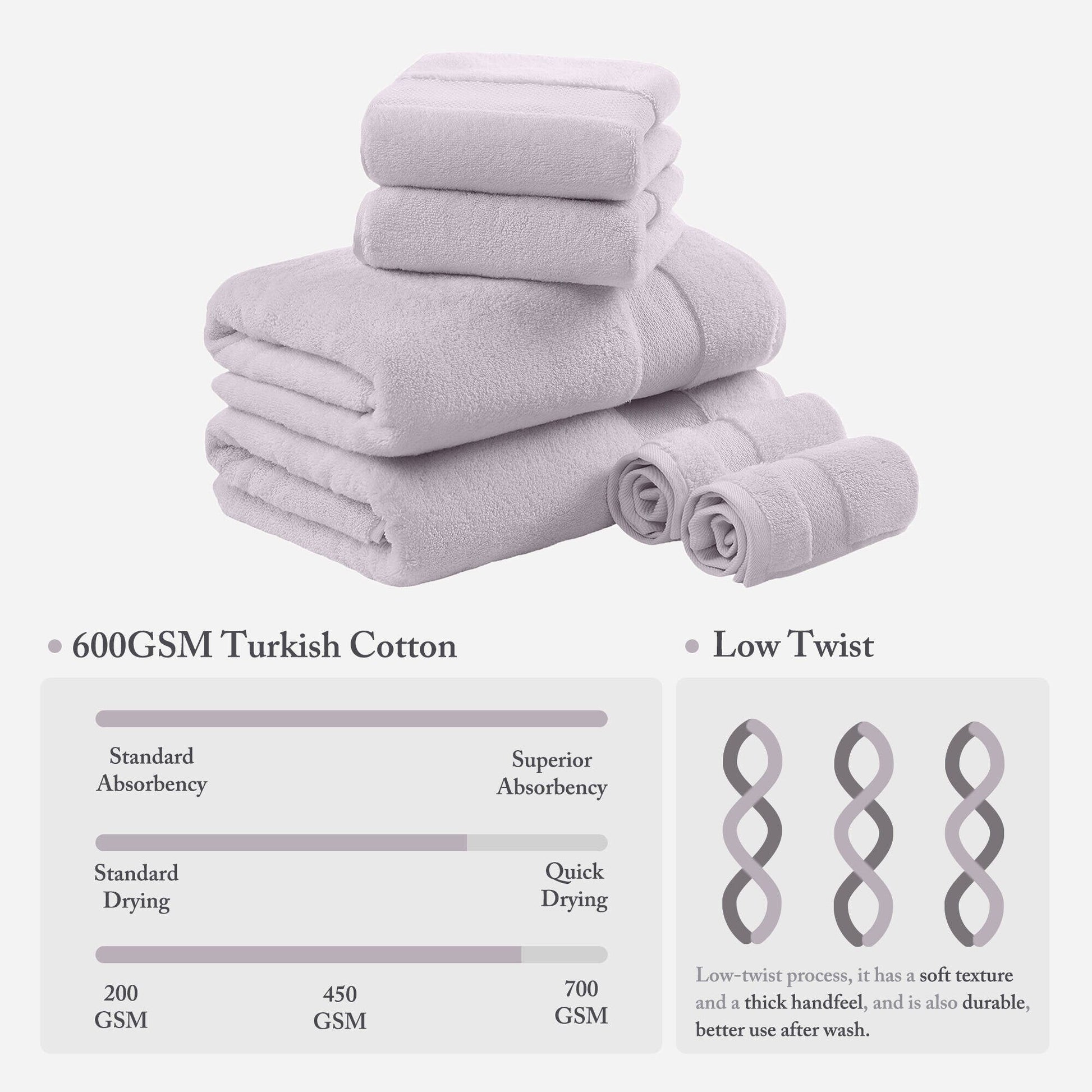 Elevate your bathroom decor with the luxuriously soft and indulgent comfort of our Madison Park Turkish cotton bath towel set. MADE IN TURKEY. These oversized cotton towels are made from smooth low-twist yarns with 600gsm weight, creating a soft and plush hand feel that is also highly absorbent for the ultimate in luxury. Each towel features a dobby border and end hem to add a classic, yet refined touch to the design; while also Made in Green by Oeko-Tex Certified for superior quality towel. Transform your bathroom into a relaxing spa-like retreat with this luxury complete 6 Piece bath towel set.