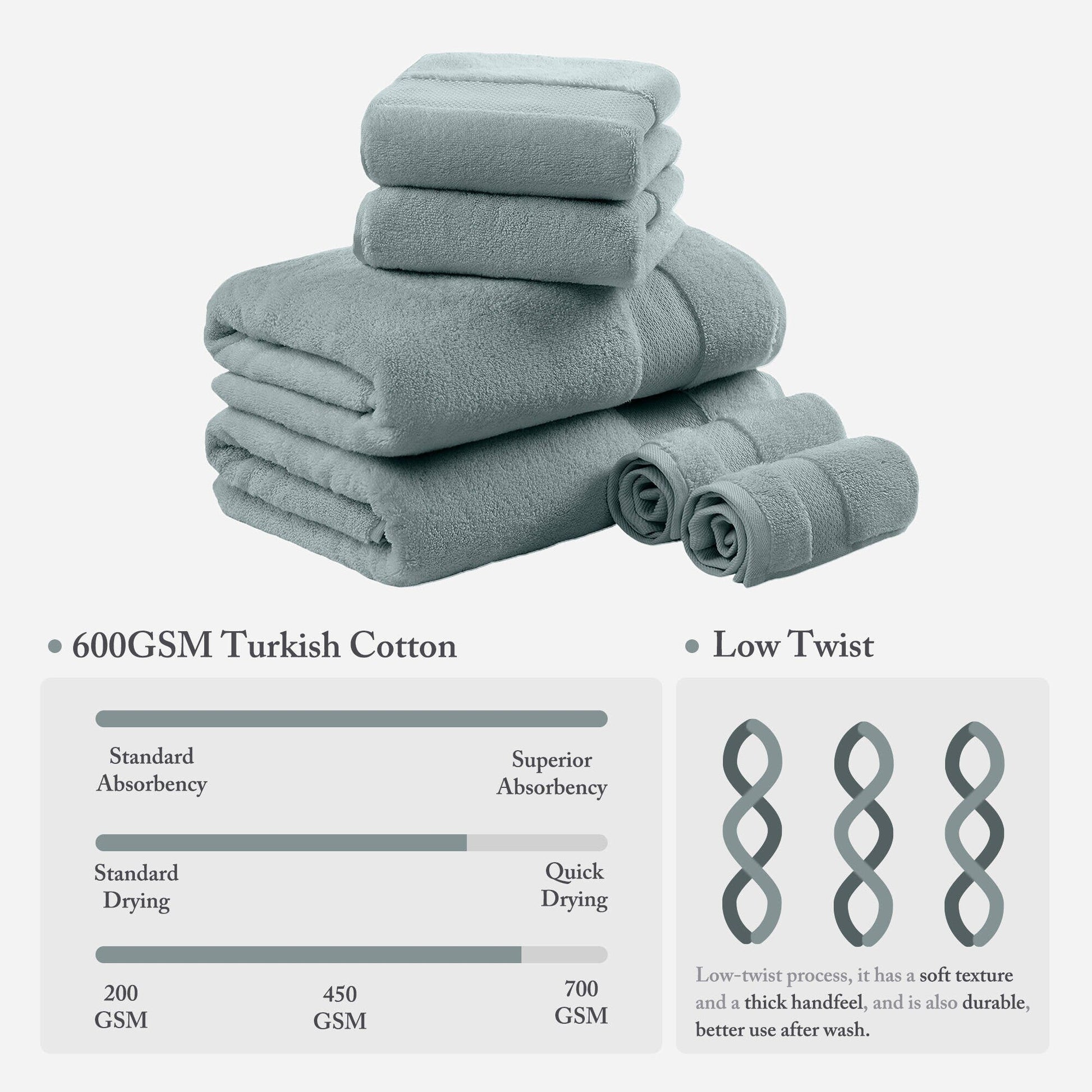 • Premium 100% Turkish Cotton Bath 6 piece towel set