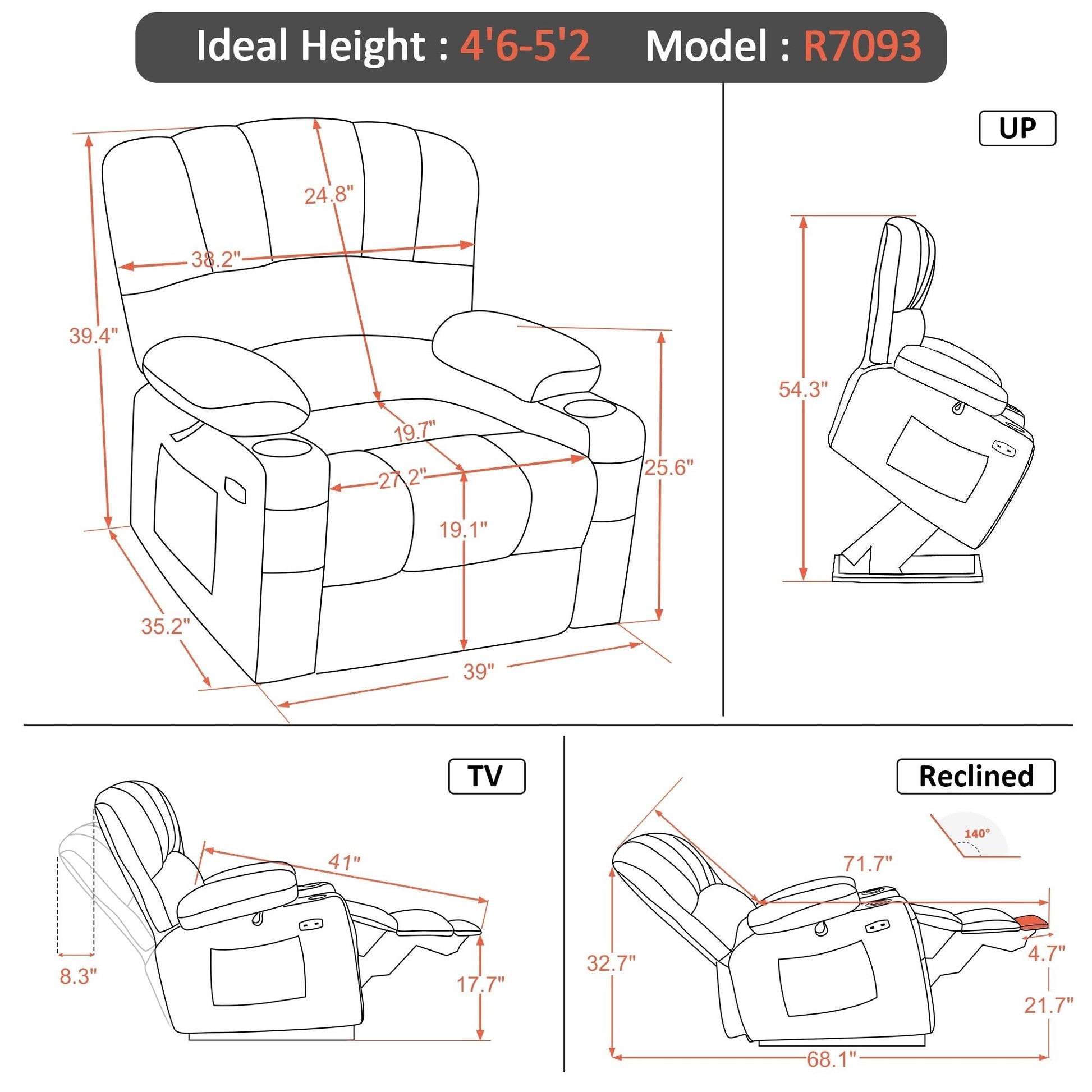 MCombo Recliner Chair Sofa with Massage and Heat...