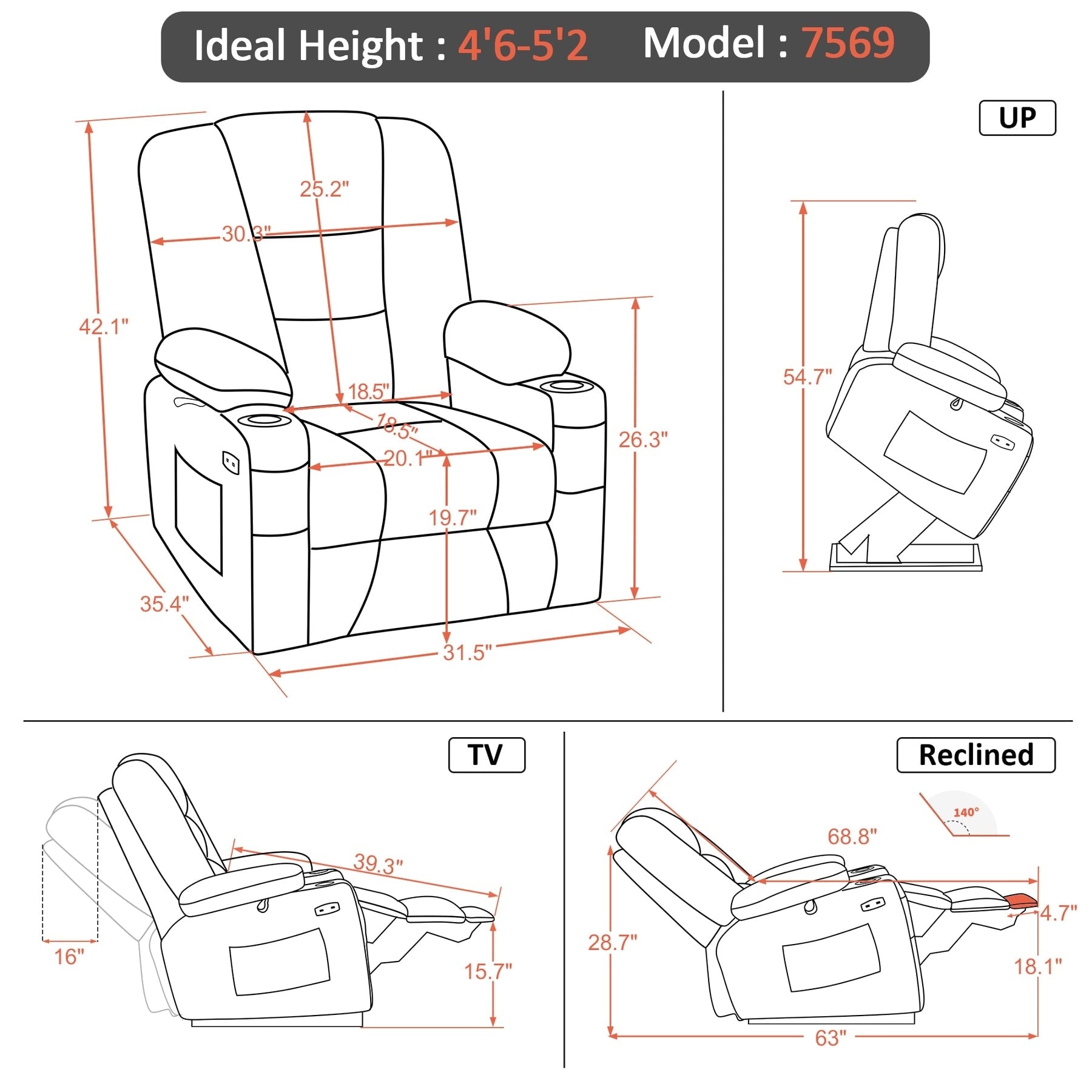 • Designed for Petite People. The right-sized chair will be as perfectly-sized as your shadow, and we developed this small lift chair for short people. The seat dimensions are smaller to accommodate shorter heights. (Recommended Height: 4'6'-5'2')