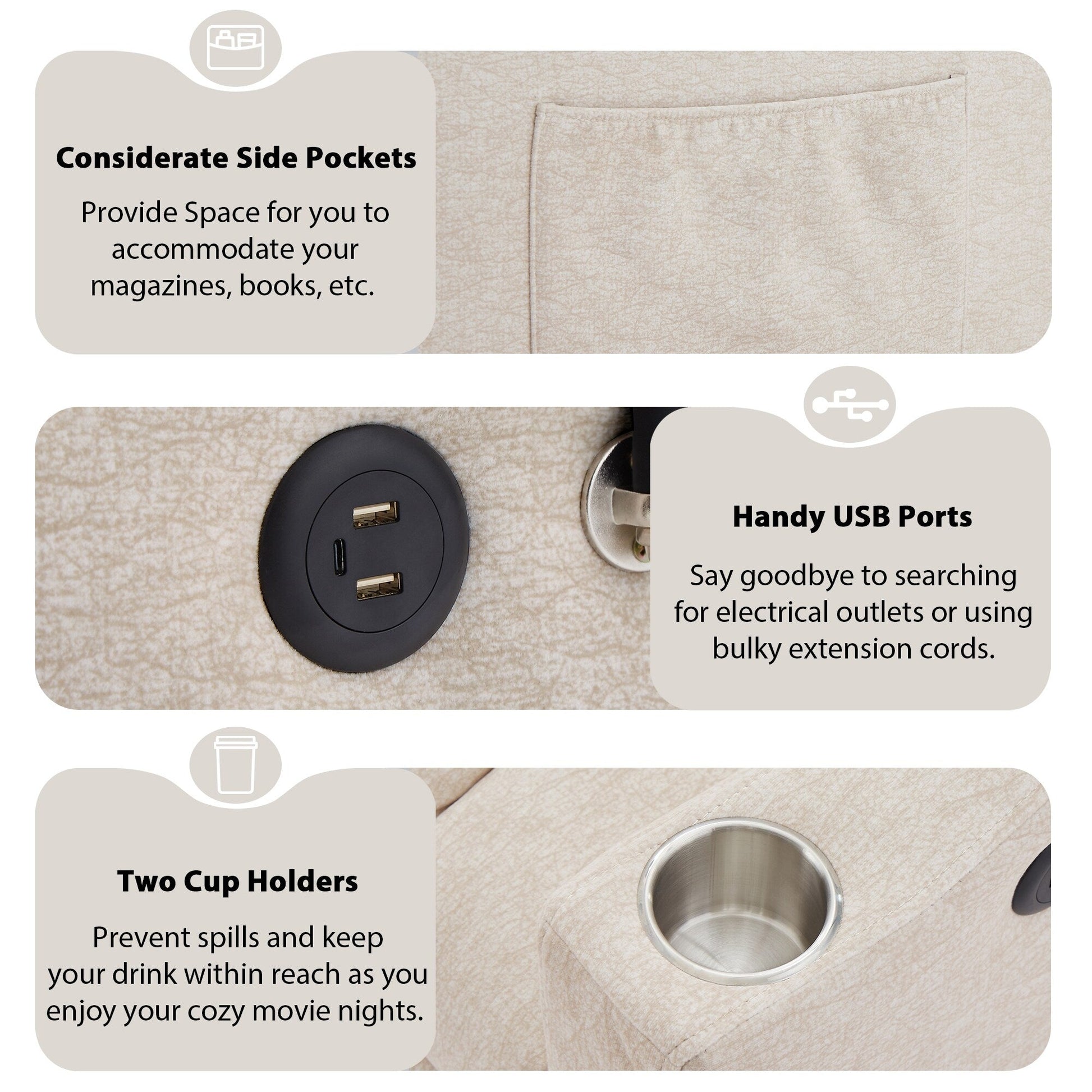 [Two Cup Holders] Having two built-in cup holders helps prevent spills, so you don't have any stains to worry about. Plus, you can keep your drink within reach as you enjoy your cozy movie nights or leisurely reading sessions.