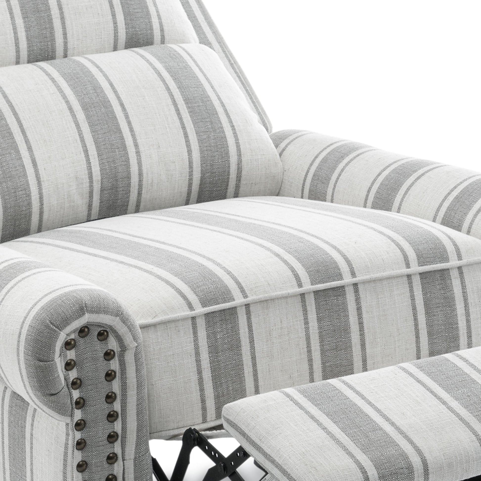 Mid-Century Nailhead Pu Leather Linen Recliner