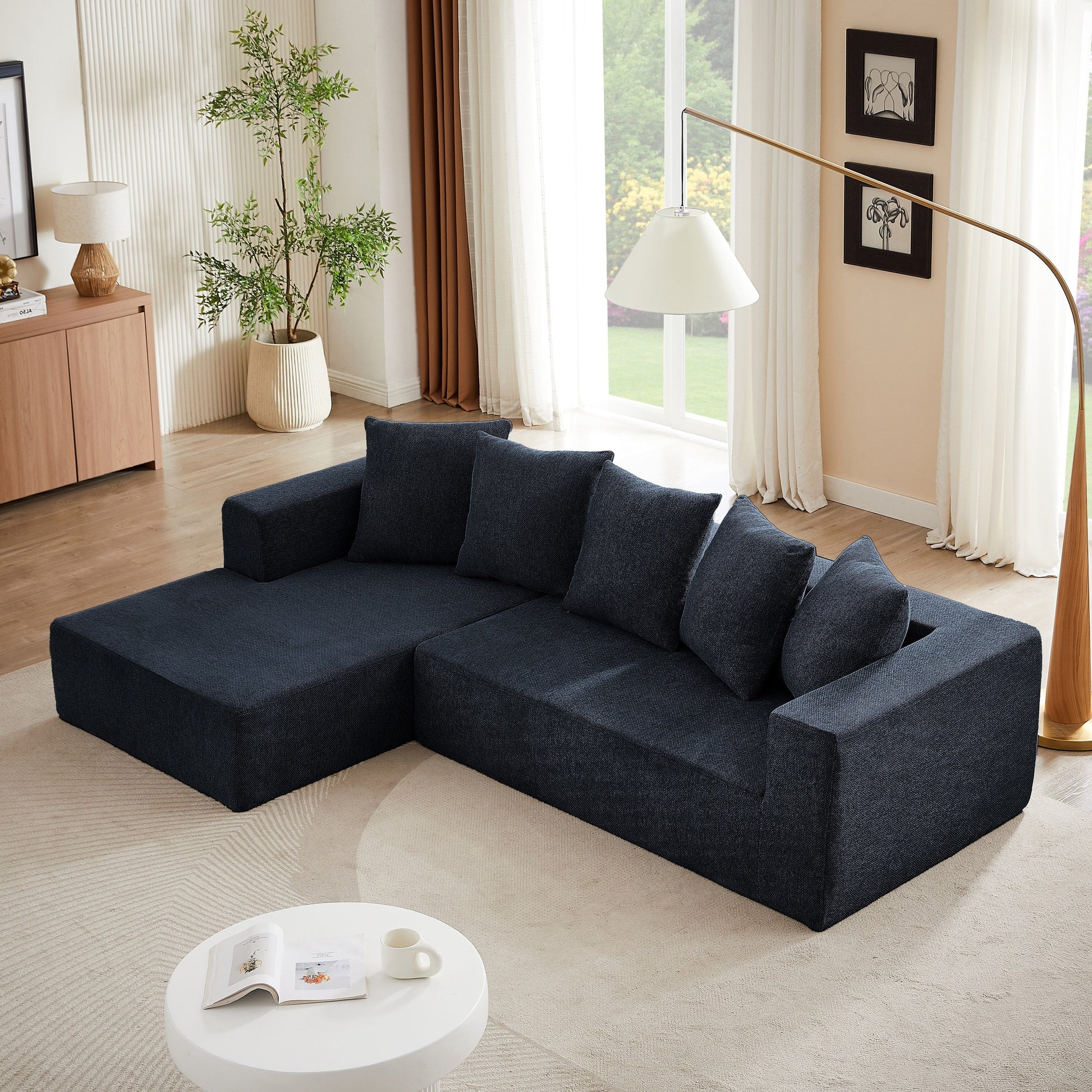 Minimalist Chenille L-Shaped Modular Sectional Sofa Set Fabric...