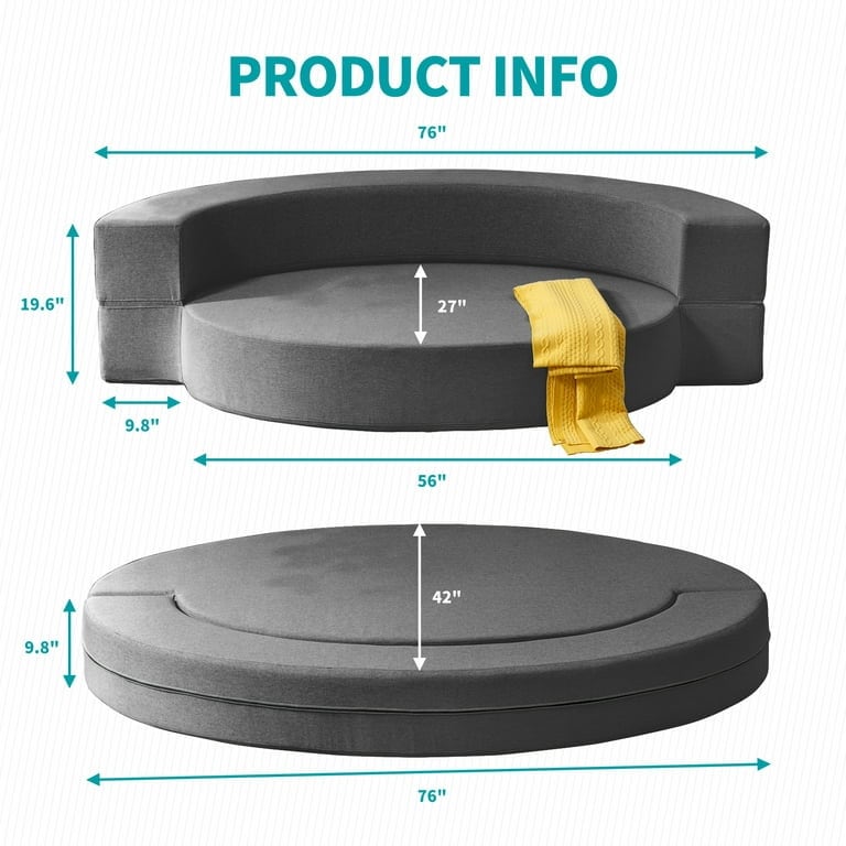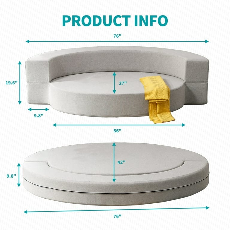 ðãQuality MaterialãThis folding sofa bed is filled with quality foam, premium linen cover assures its durability with skin-friendly touch, comfy enough for users that want to experience better comfort. With great resilience, this couch stands out with its deformation-proof trait, and will offer you a pleasant lounging and rest experience without collapsing. ð ãUnique Oval DesignãThe fold down sofa bed will get you away from discomfort with ergonomically oval shaped design, and will bring you great comfort in any space with limited zones. The zipper design makes its upholstery detachable and washable. ð ãConvertible FormsãFrom folding couch bed to a floor mattress, this futon sofa bed stands out with its size that wonât overpower the space, measuring 76''W x 36.8''D x 19.6''H in sofa form and 76''W x 42''D x 9.8''H in mattress size. A versatile snug home module and perfect choice for furniture update. ð ãMultiple Applicationsã?Set up a vacation space, guest room or a relaxation zone easily with this convertible sofa. Perfect for lofts, apartments, offices, dorms, family nests, and travel camping or many other places with limited space. An ideal spot for reading, watching movies, playing games, napping, etc. ð ãNo-hassle DeliveryãBesides offering quality sleeper sofa, we have a professional after-sale team and promise to provide prompt customer service and offer satisfying solutions online. Every piece of product will be strictly packed and inspected before shipping.
