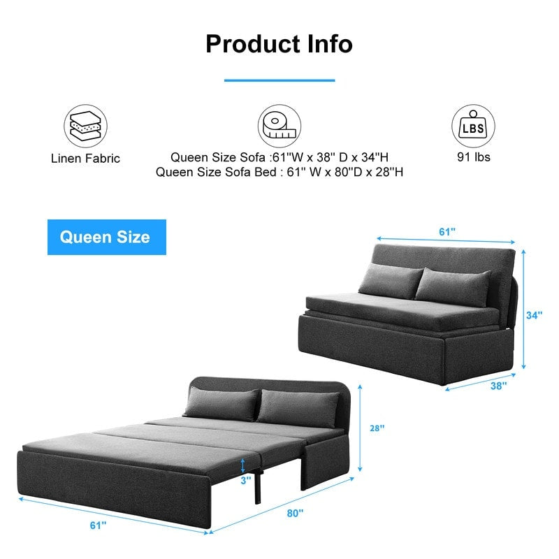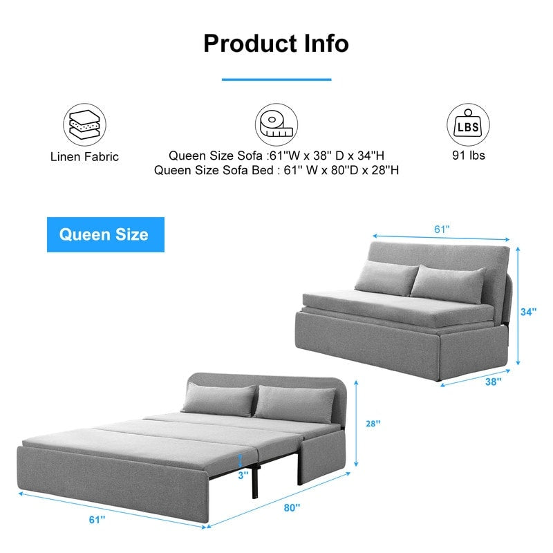 Mixoy Linen 2-in-1 Convertible Sofa Bed,Twin/Queen...