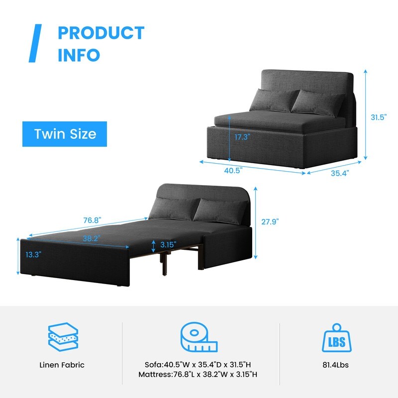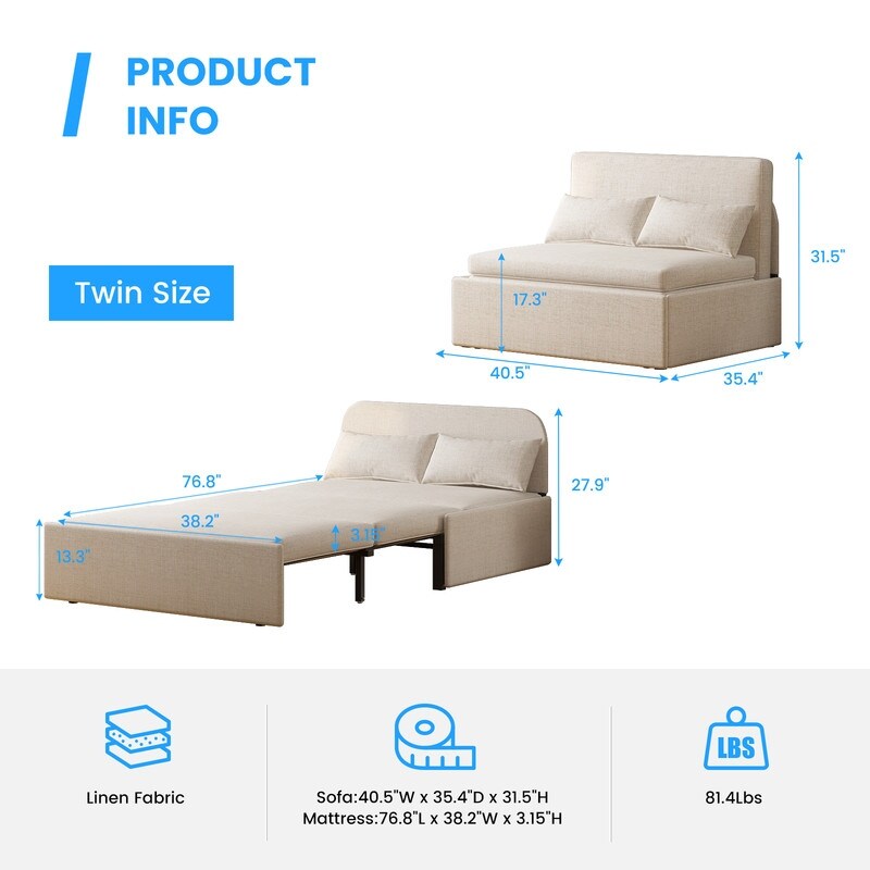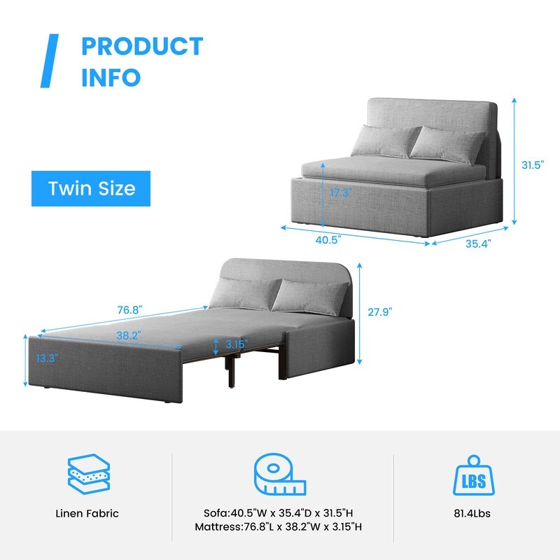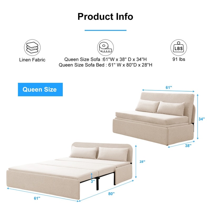 Mixoy Linen 2-in-1 Convertible Sofa Bed,Twin/Queen Pull Out...