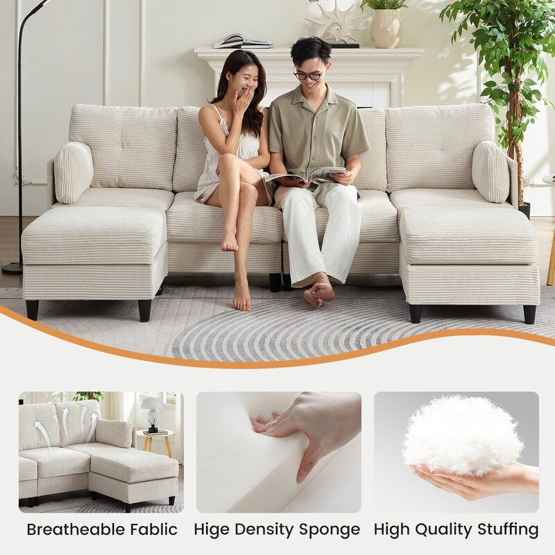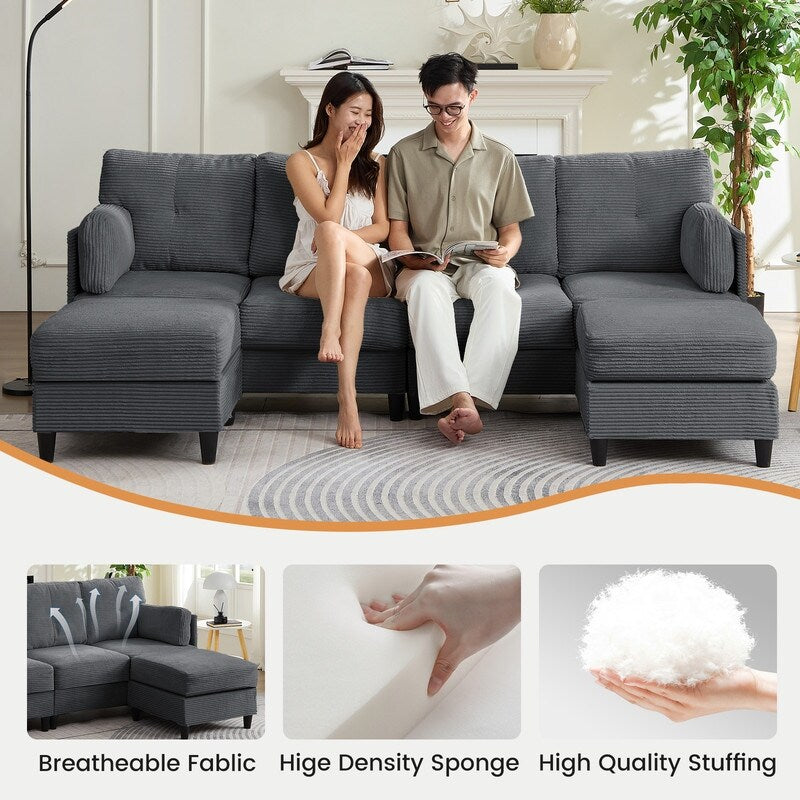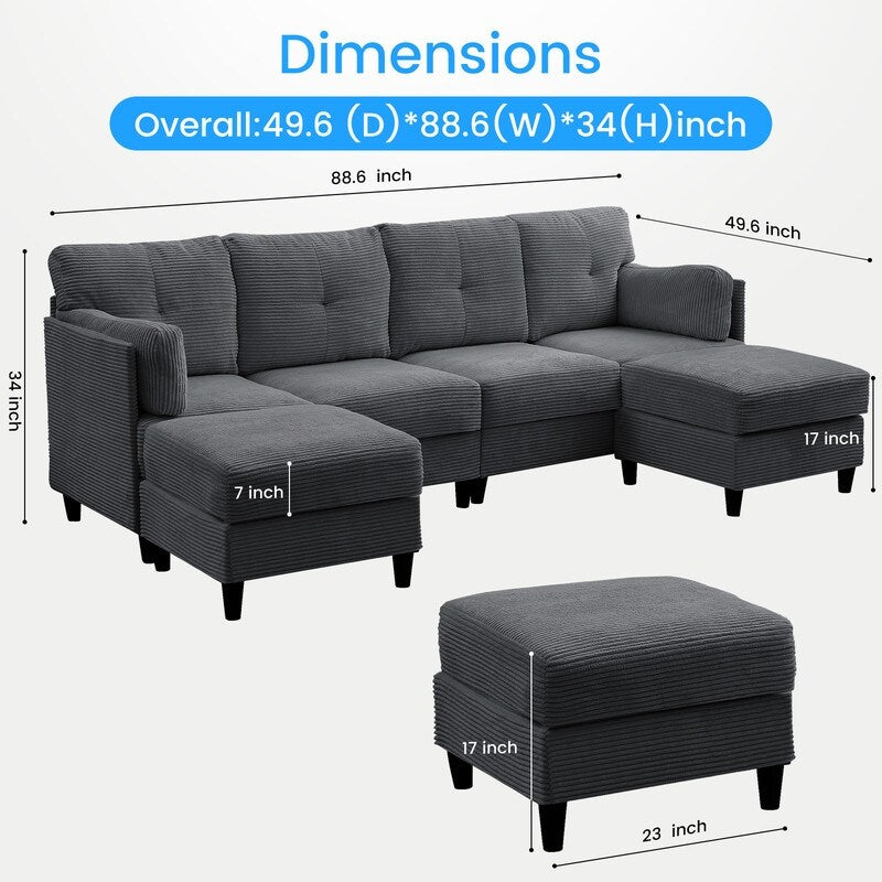 Mixoy W89inch U-Shaped Corduroy Sectional Sofa with Reversible...