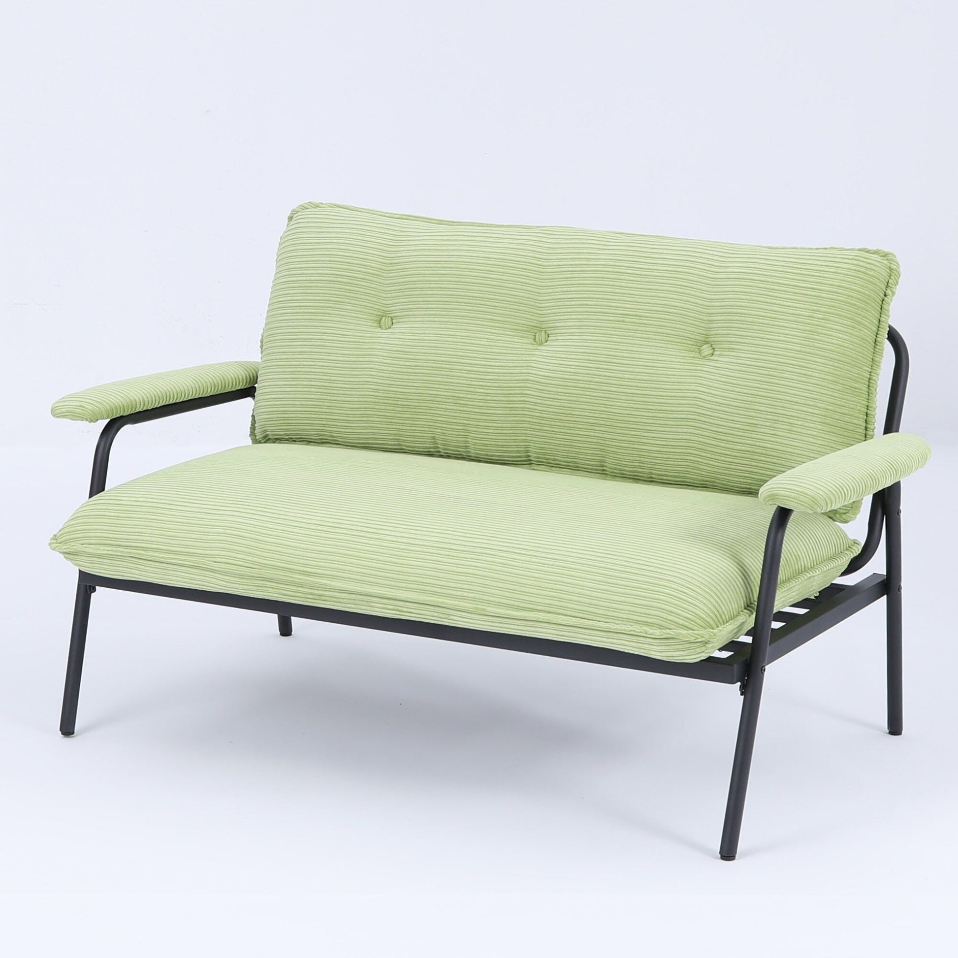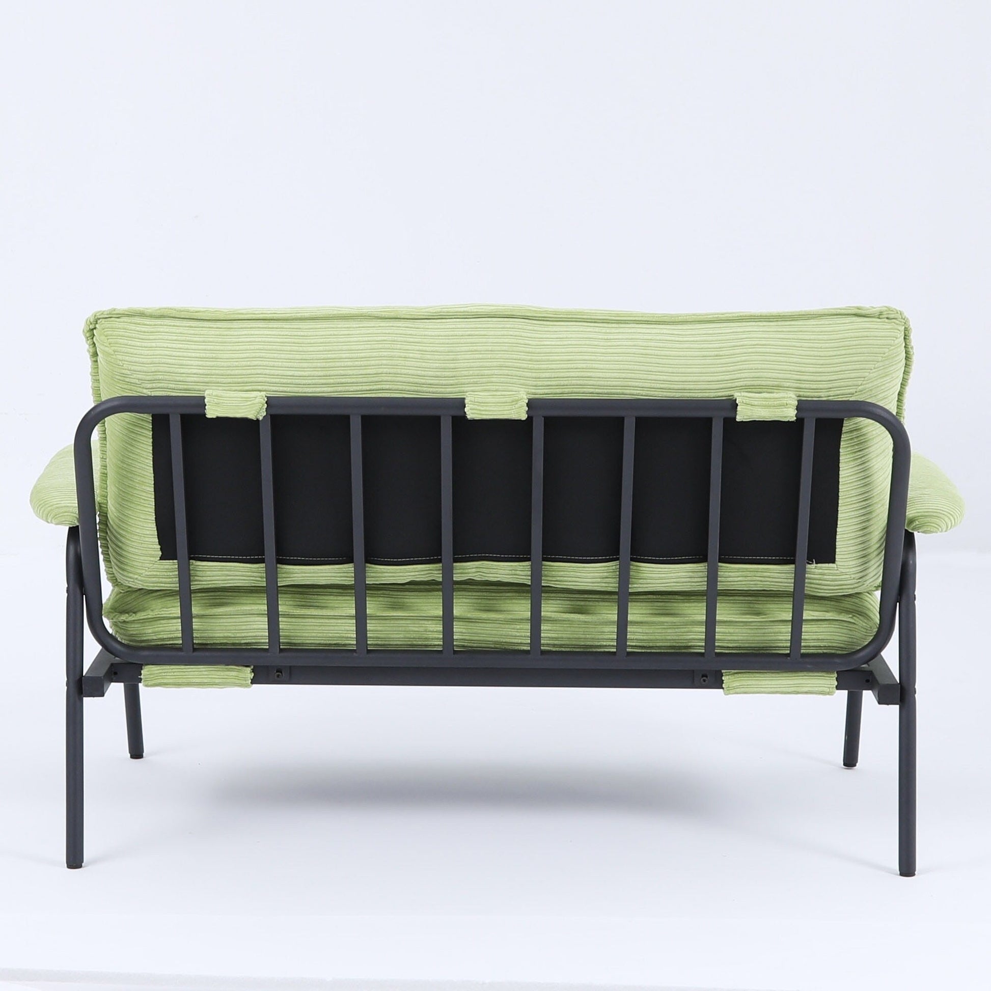 • The exterior design features a simple and modern style. The fresh green striped fabric is paired with a black metal frame, giving a natural and refreshing visual impression. It also goes well with various American home decoration styles. The backrest adopts a classic button tufted design, adding a sense of refinement and retro charm.