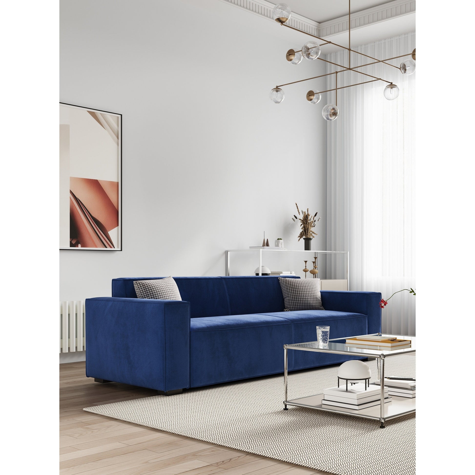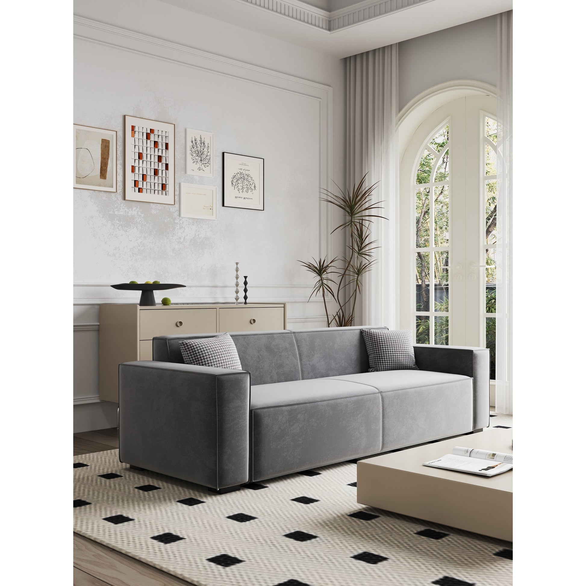 Sturdy & Durable Frame: This 88' 6-seater sofa is made of a sturdy steel frame and wood, capable of holding up to 1000 lbs. High-density sprung foam cushions provide ultimate comfort.