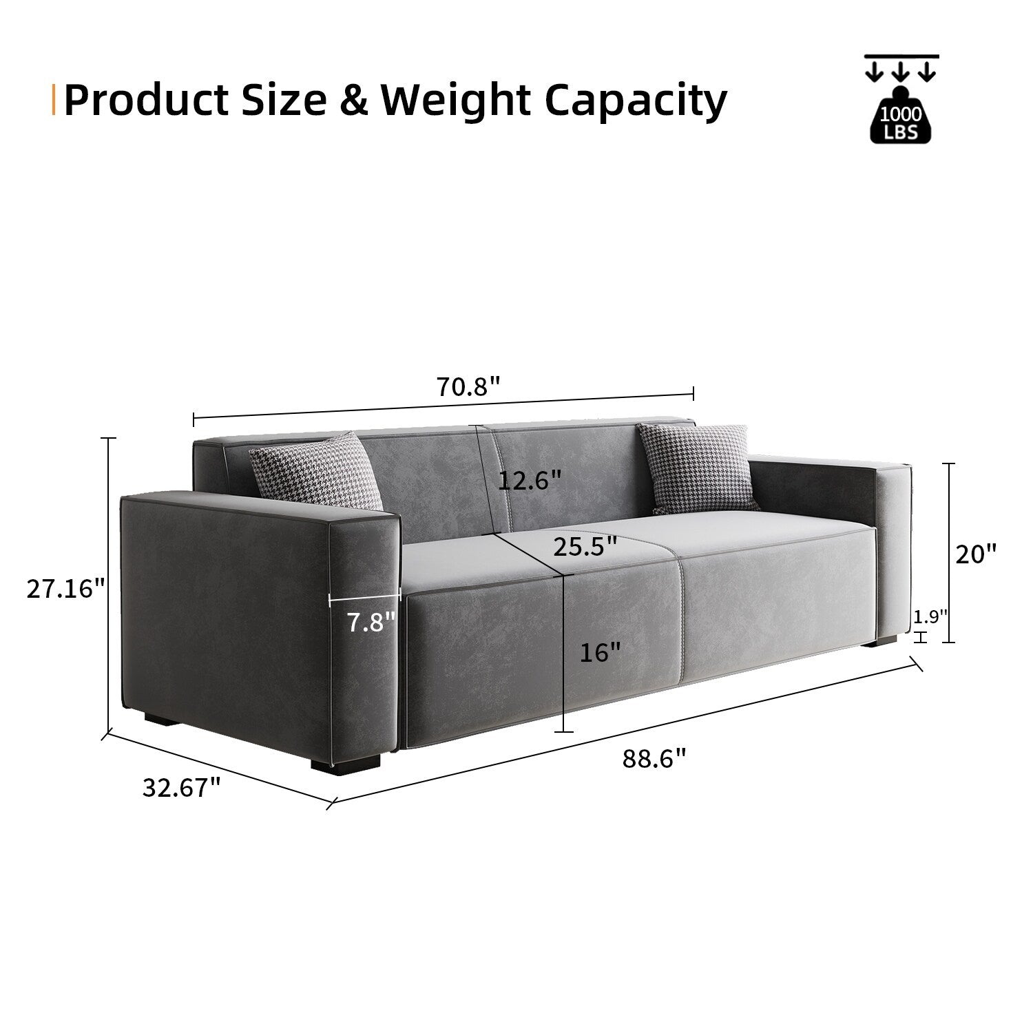 Spacious & Comfy Couch: The sofa provides a perfect setting for leisure life. It features a 25.5-inch deep seating area, spacious armrests, and thickened cushions, meeting your resting needs easily.