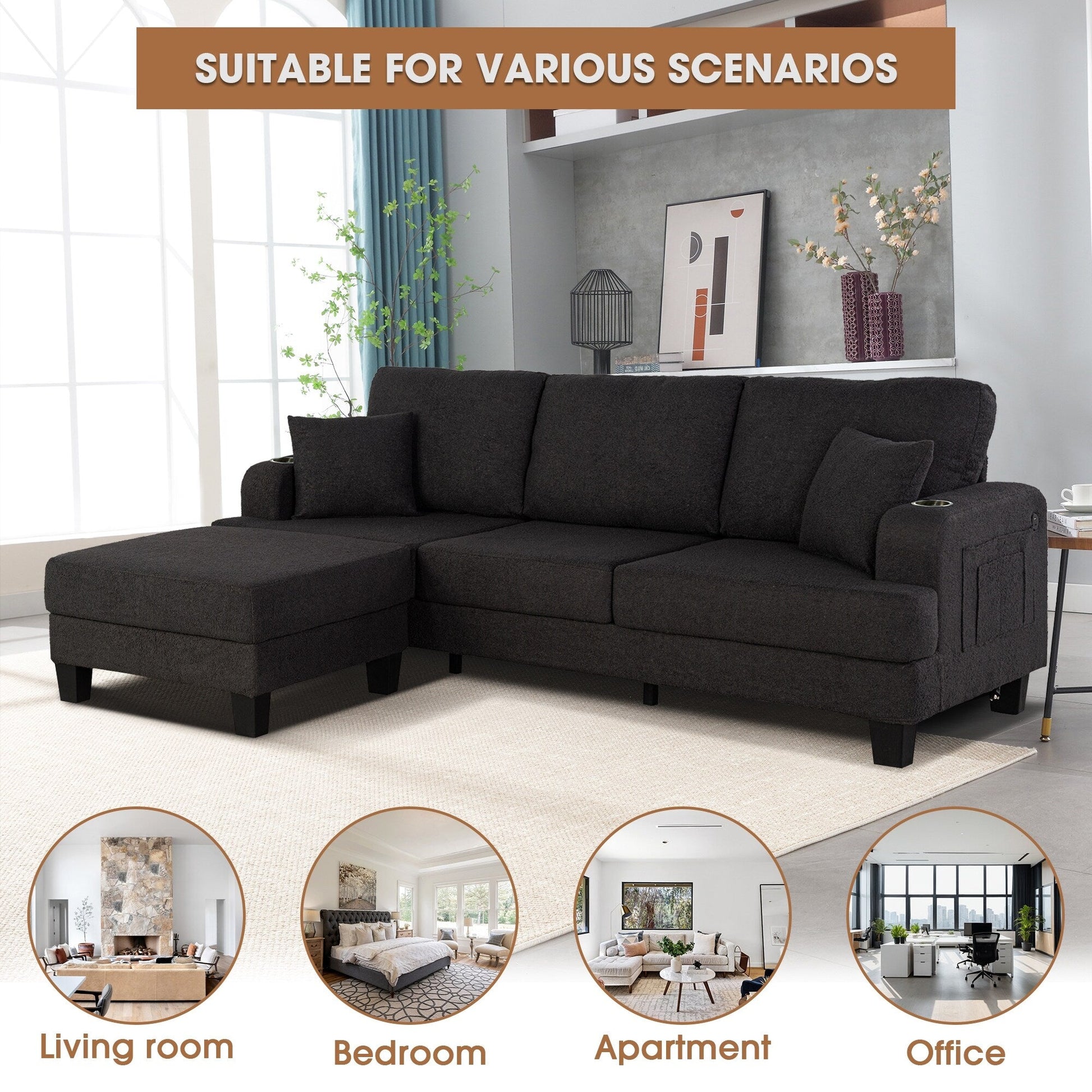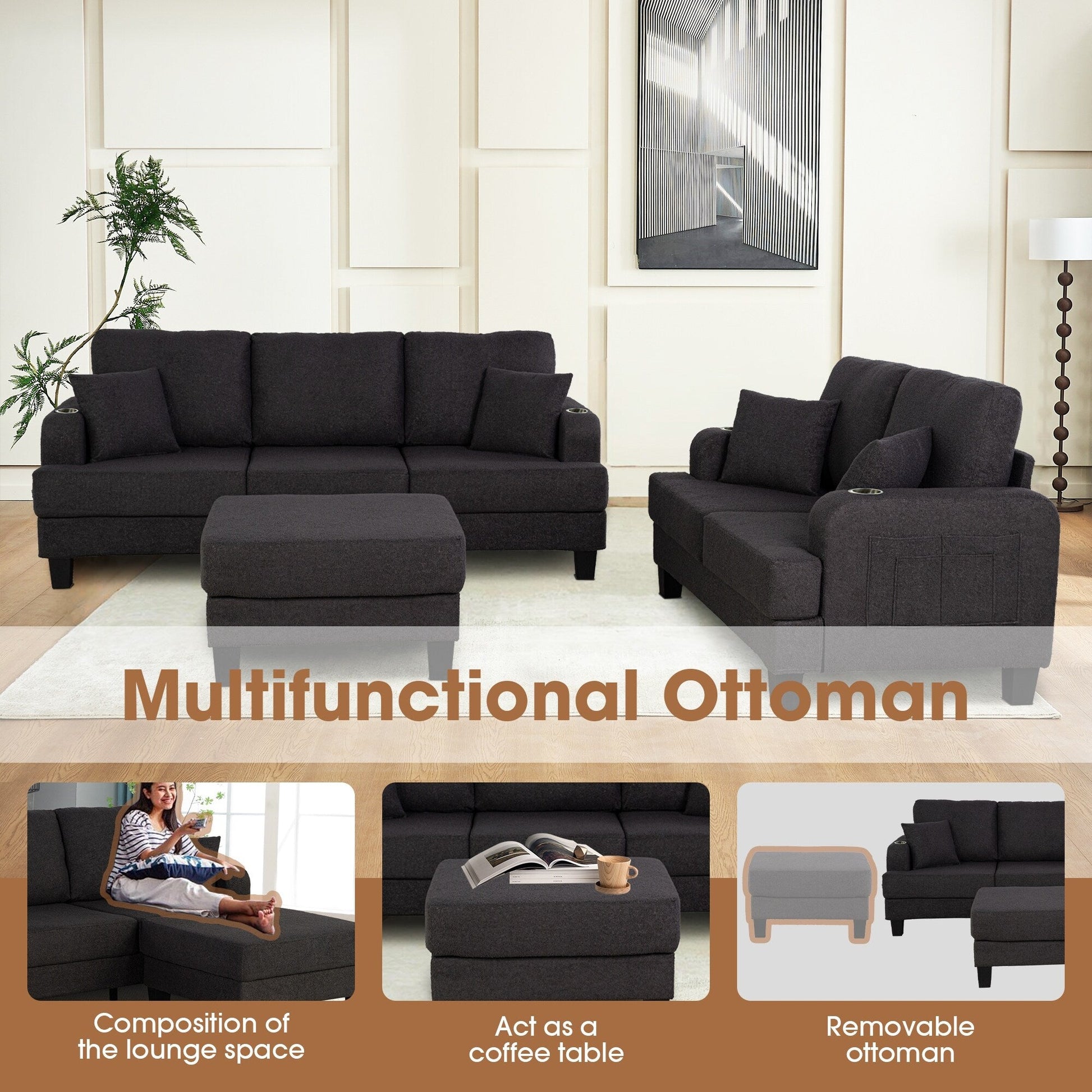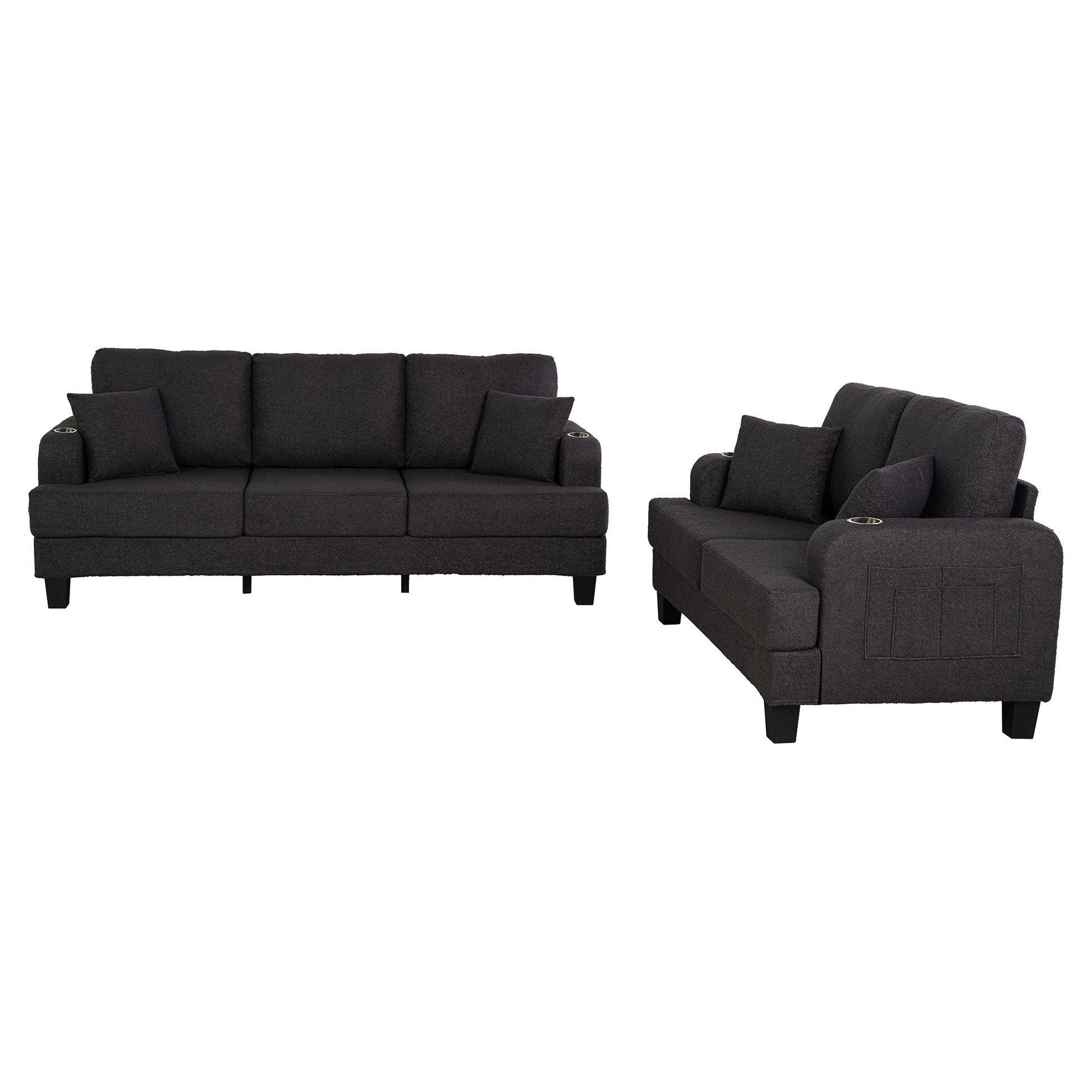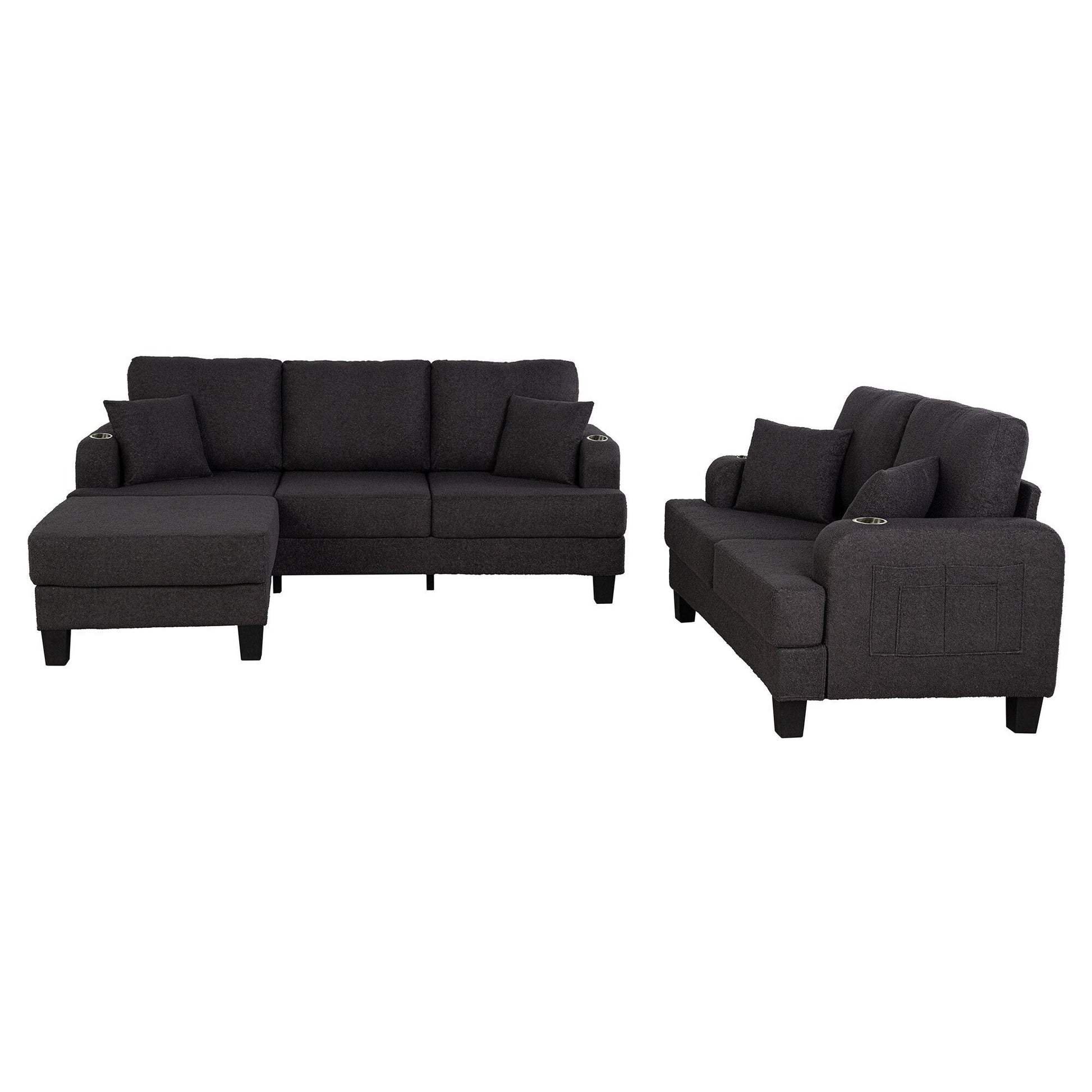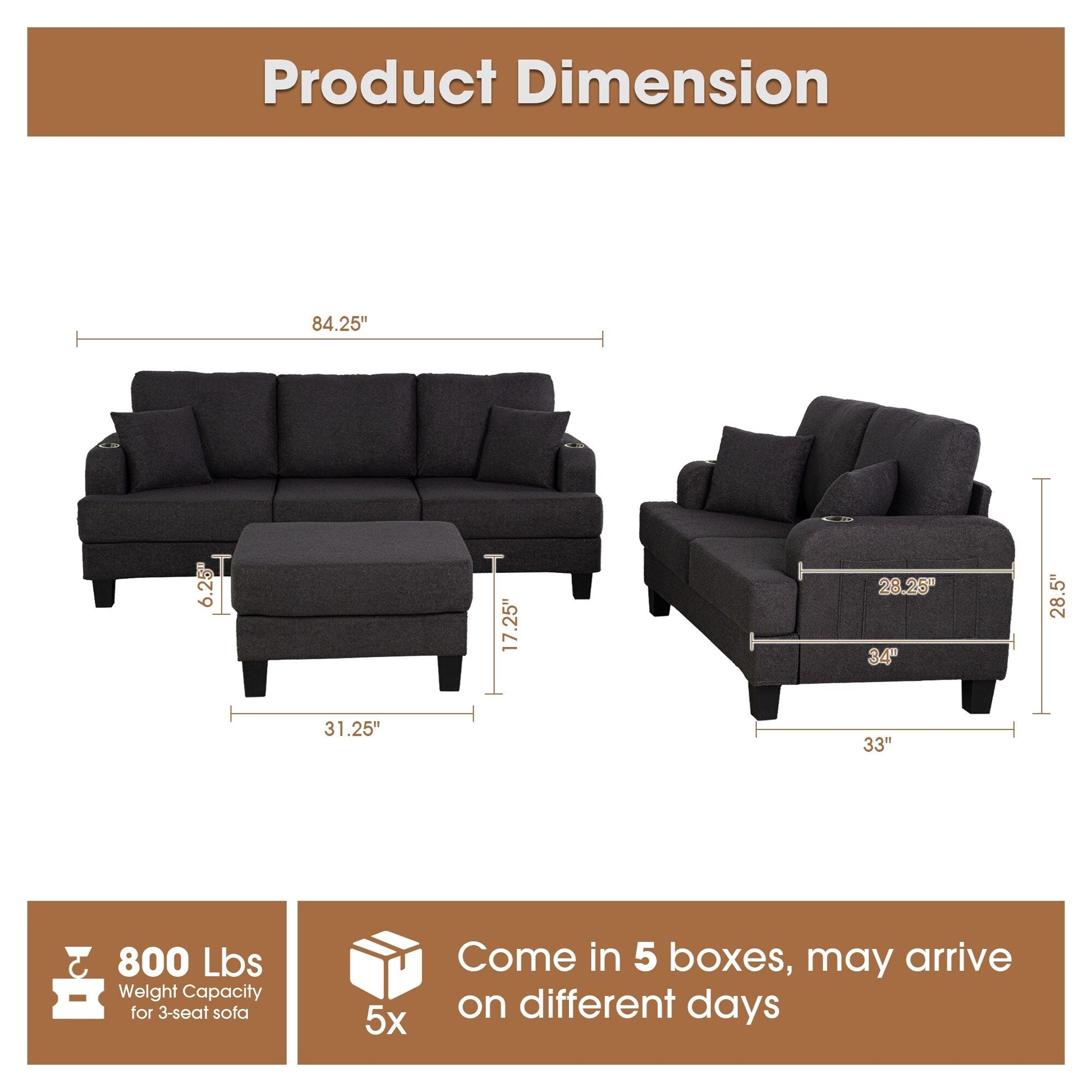 Modern Black Fabric 3-Piece Living Room Sofa Set...