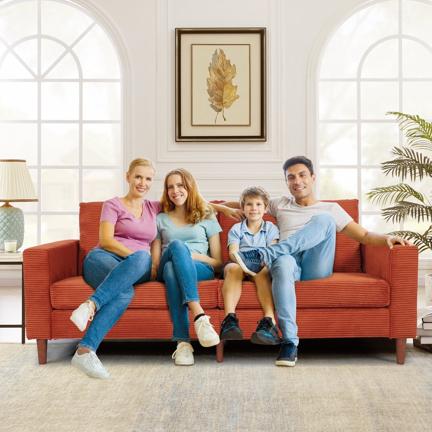 Ergonomic Support & Comfort: The ergonomic design allow it's multiple usage. Equipped with soft back & seat cushions, high-quality foam, and skin-friendly corduroy fabric, this loveseat sofa provides you an ultimate sitting experience. The upholstered backrest of the couch can relax your back, and the living room sofa is filled with high-density sponge, which allows you to sit for a long time but will not feel uncomfortable.