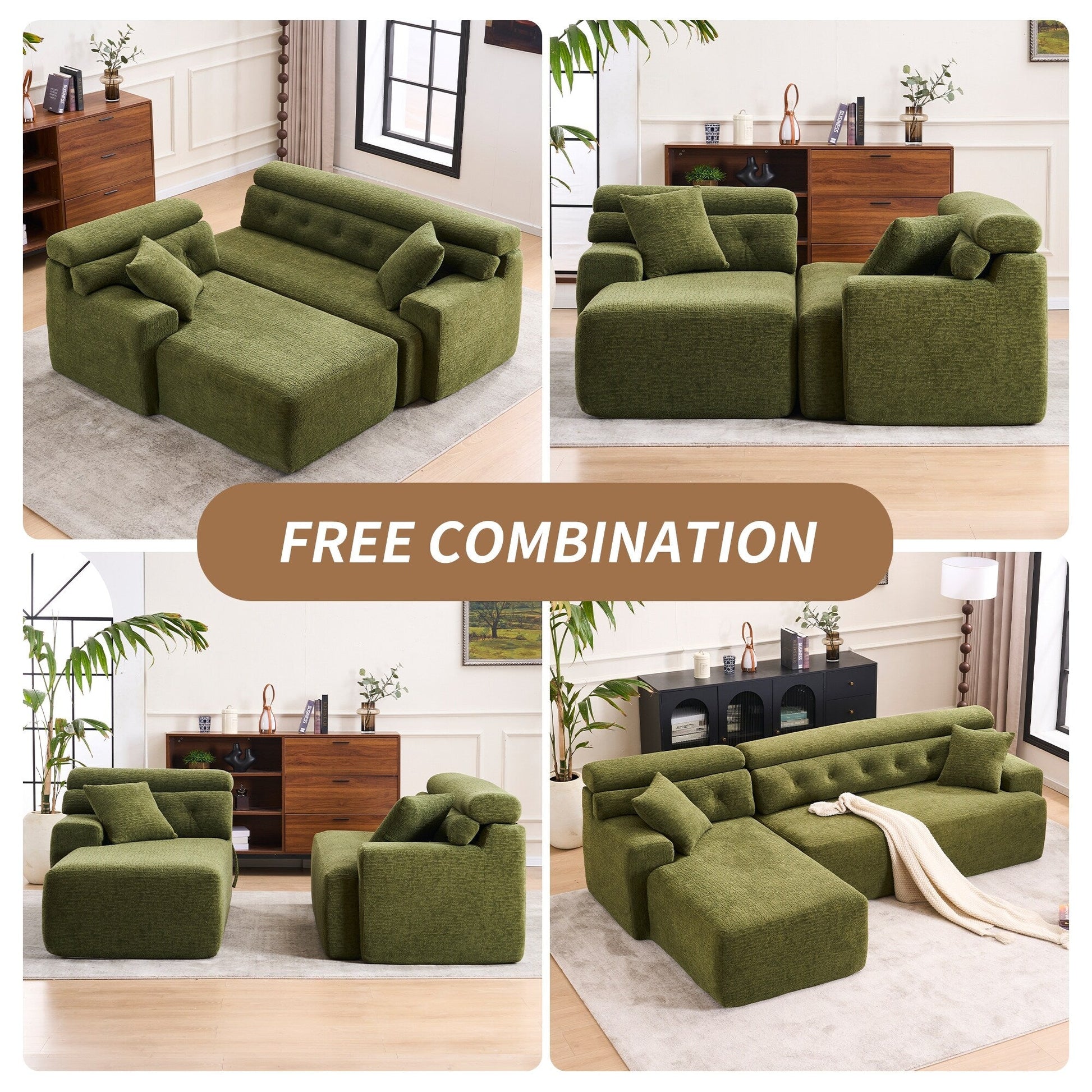 Modern Chenille Convertible L-Shaped 4-Seater Modular...