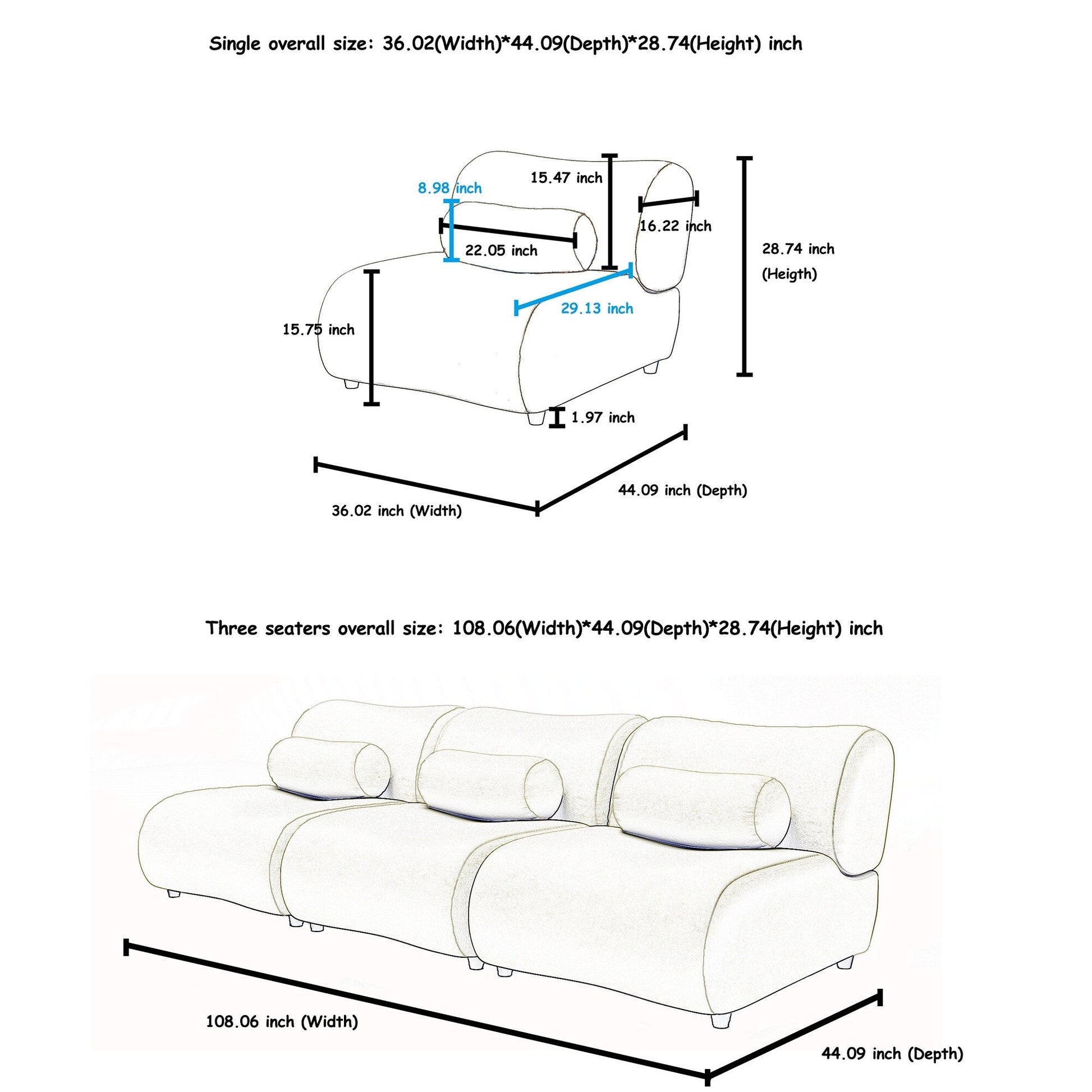 Modern Chenille Curved Modular 3-Seater Sectional Sofa with...