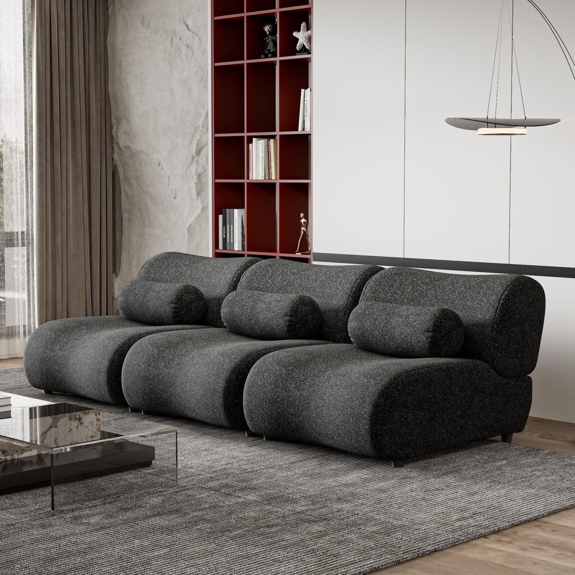 Modern Chenille Curved Modular 3-Seater Sectional...