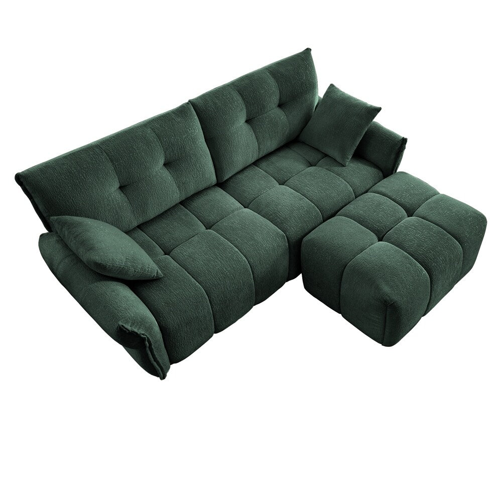 Modern Chenille Fabric 2-Seater Sofa with Ottoman