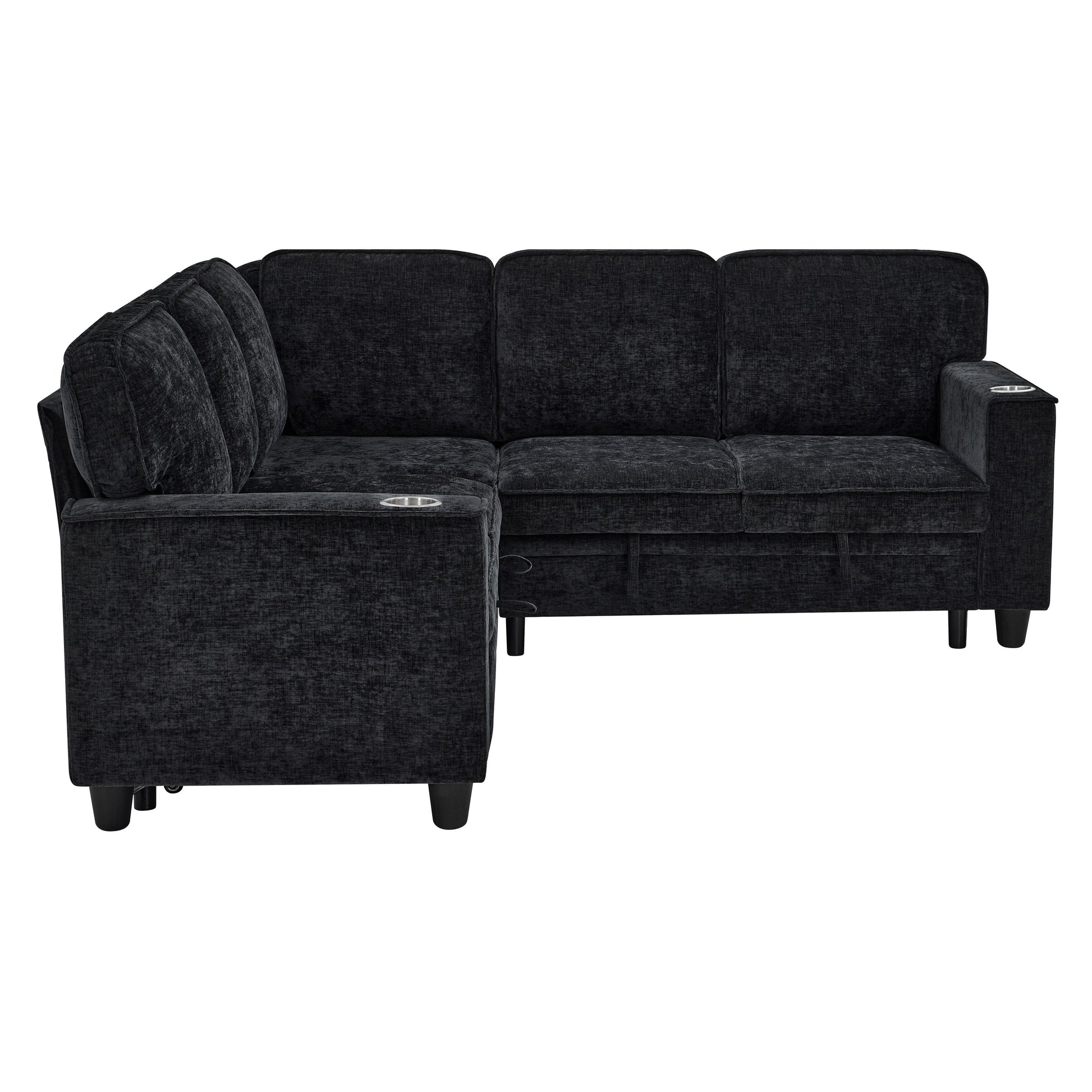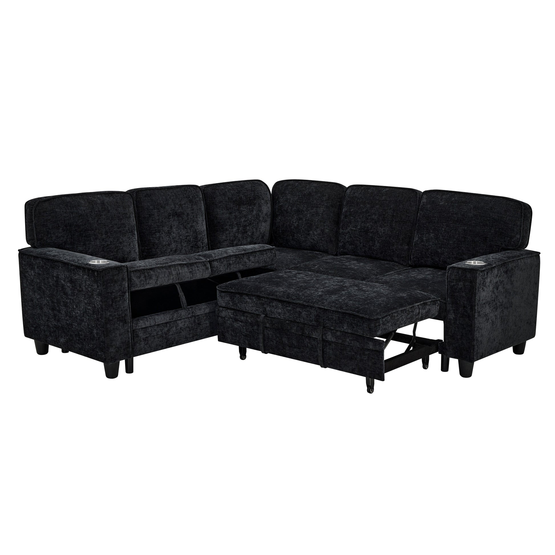 Modern Chenille L-Shaped 5-Seat Sectional Sofa Bed with...