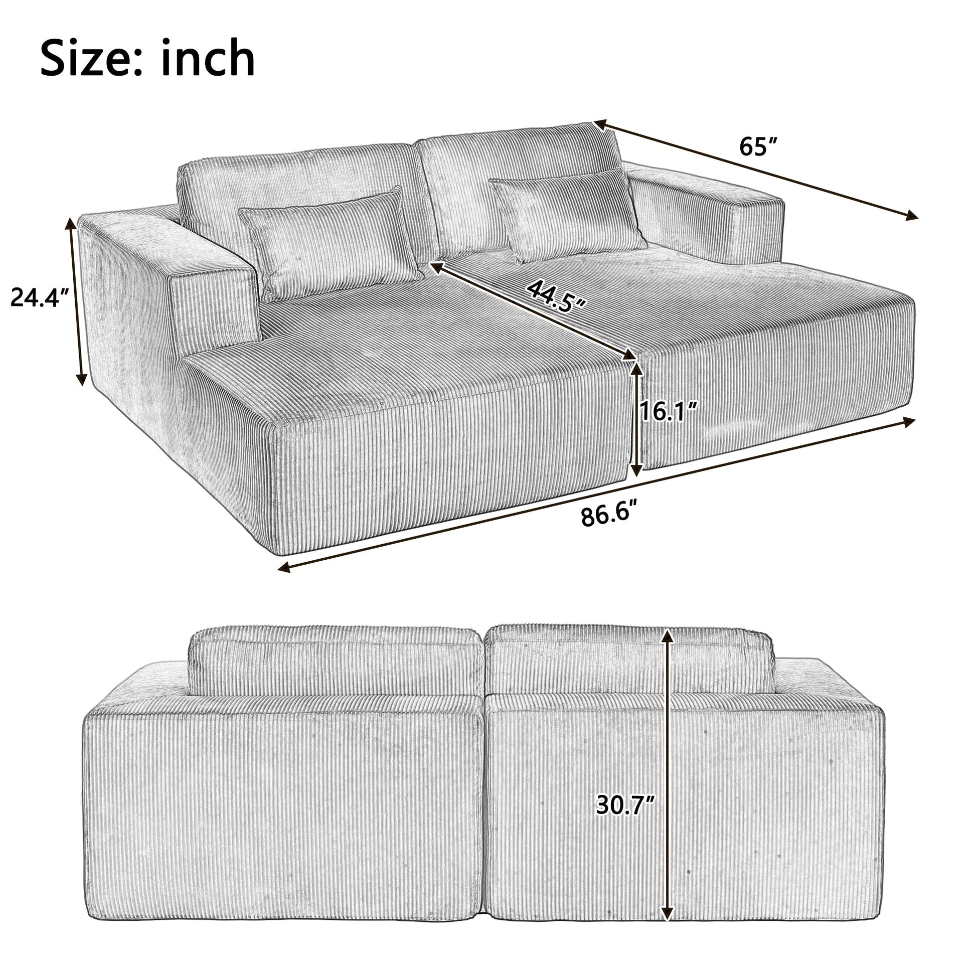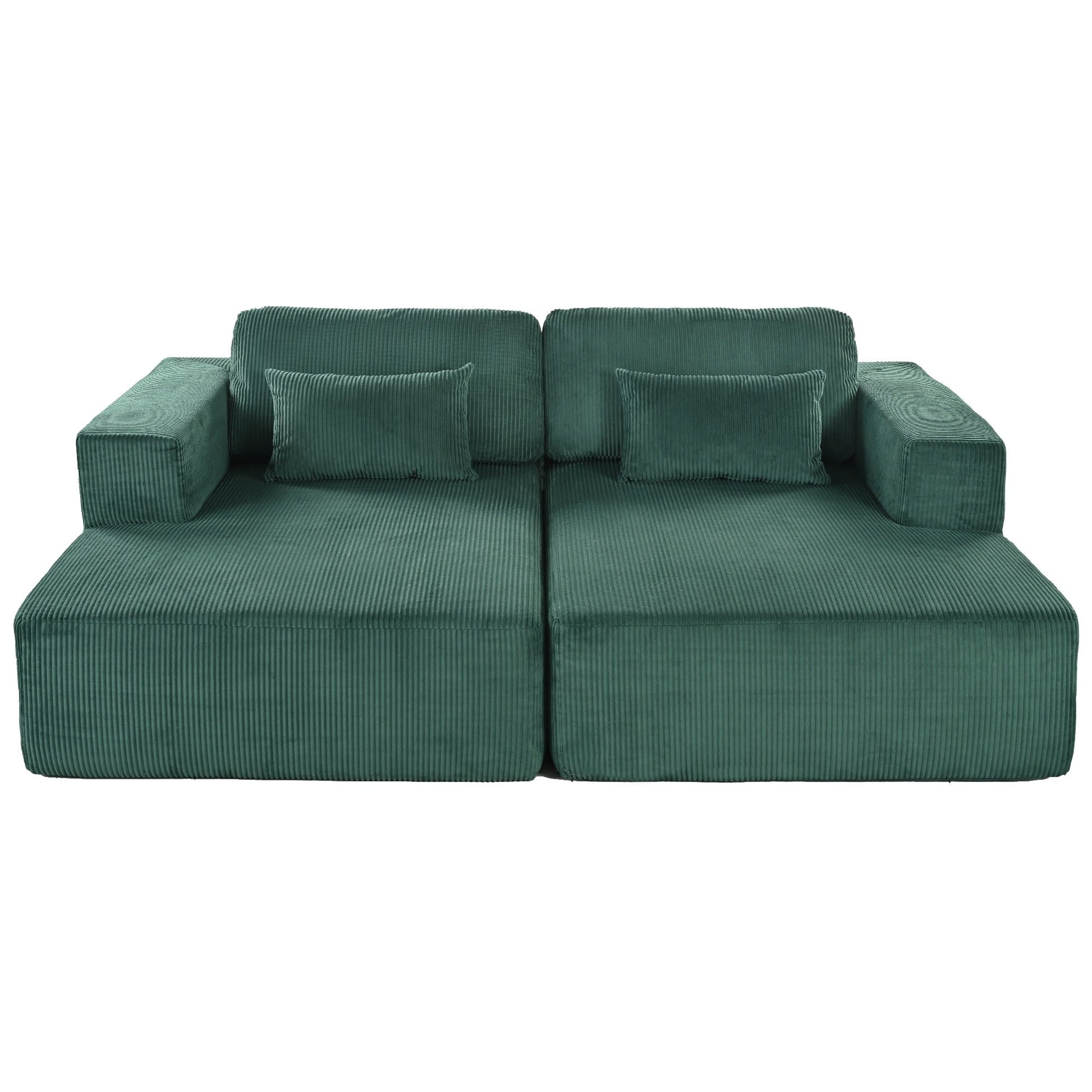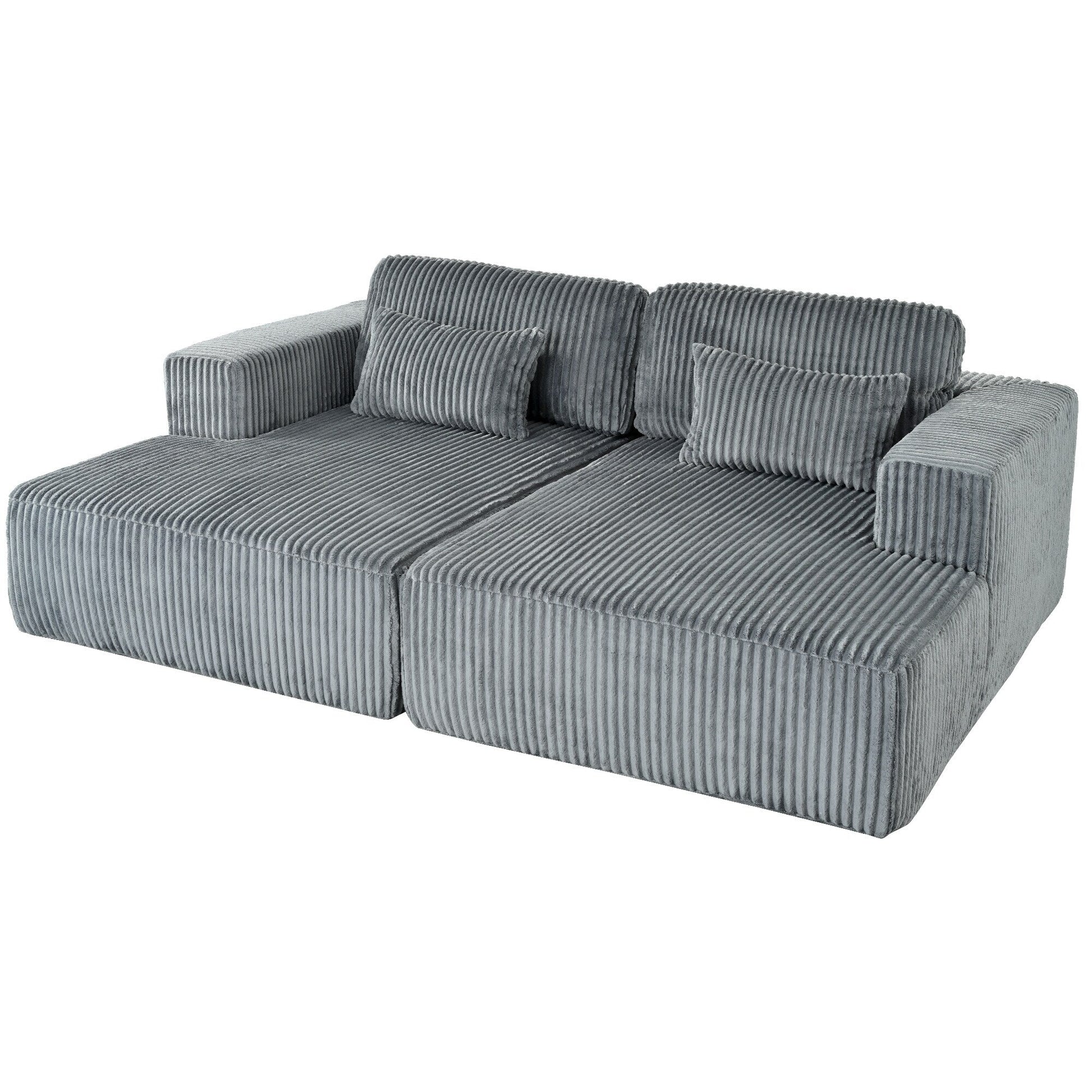 Modern Convertible Corduroy Loveseat Sofa Bed Wide Armrest...