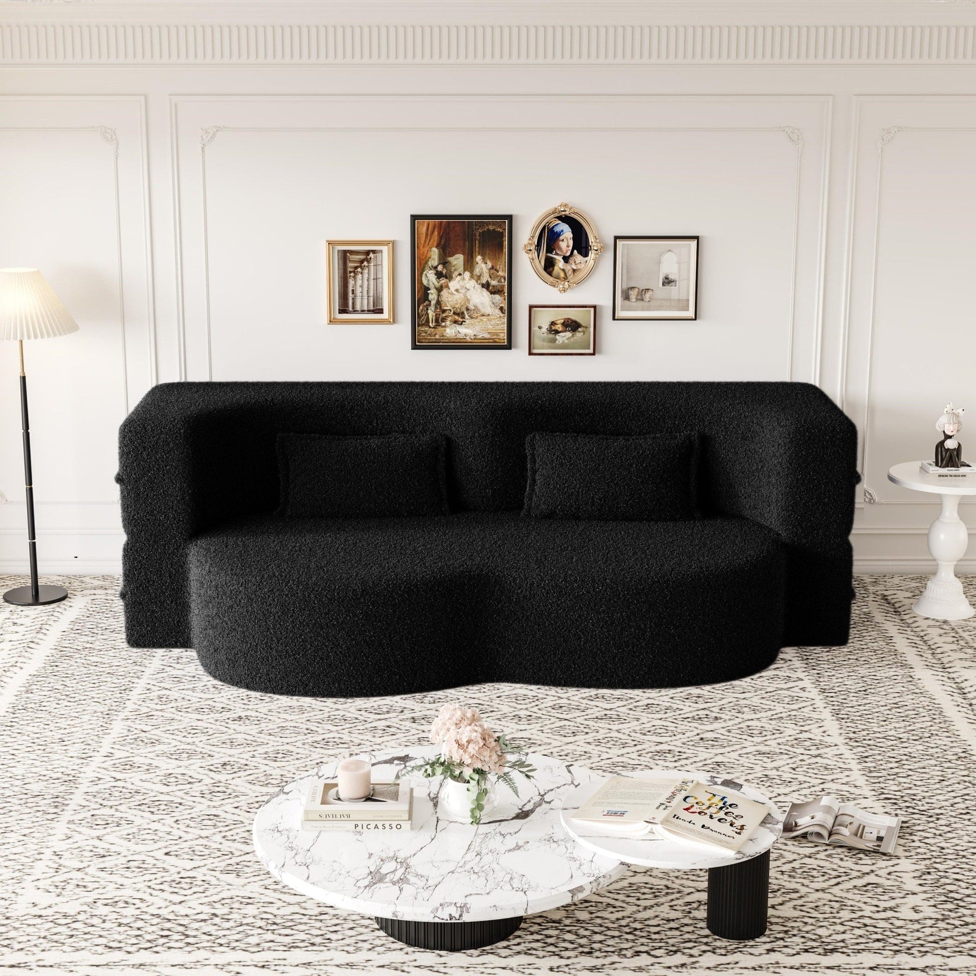Modern Convertible Teddy Fabric Foam-Filled Sleeper Sofa Bed...