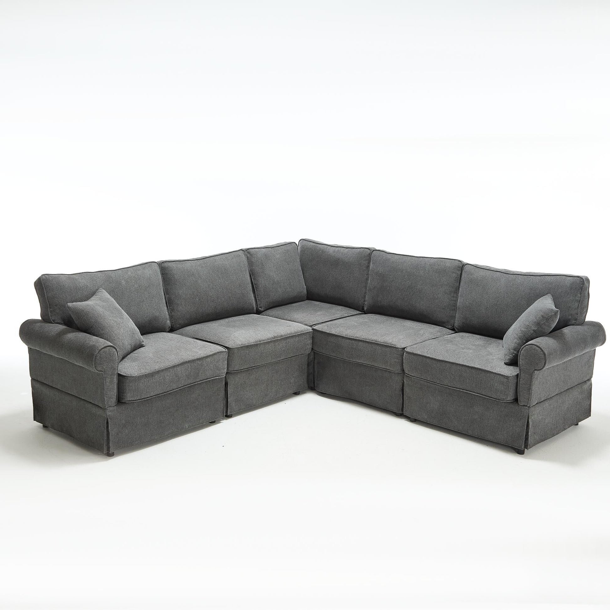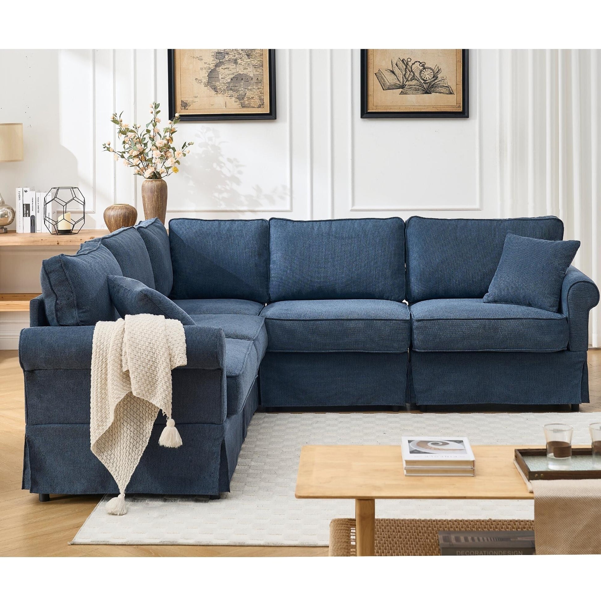 Modern L-Shaped 5-Seat Reversible Sectional Sofa Corner Couch with Rolled Arms for Living Room Apartment