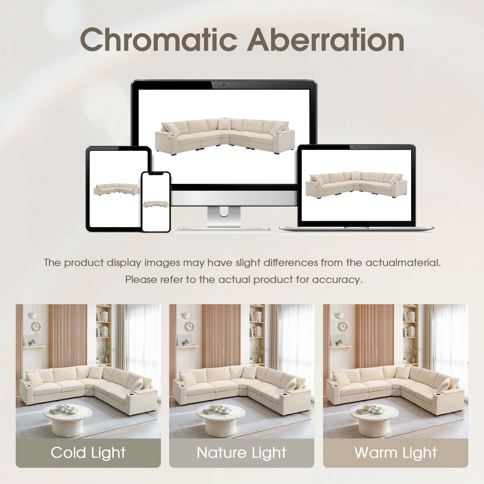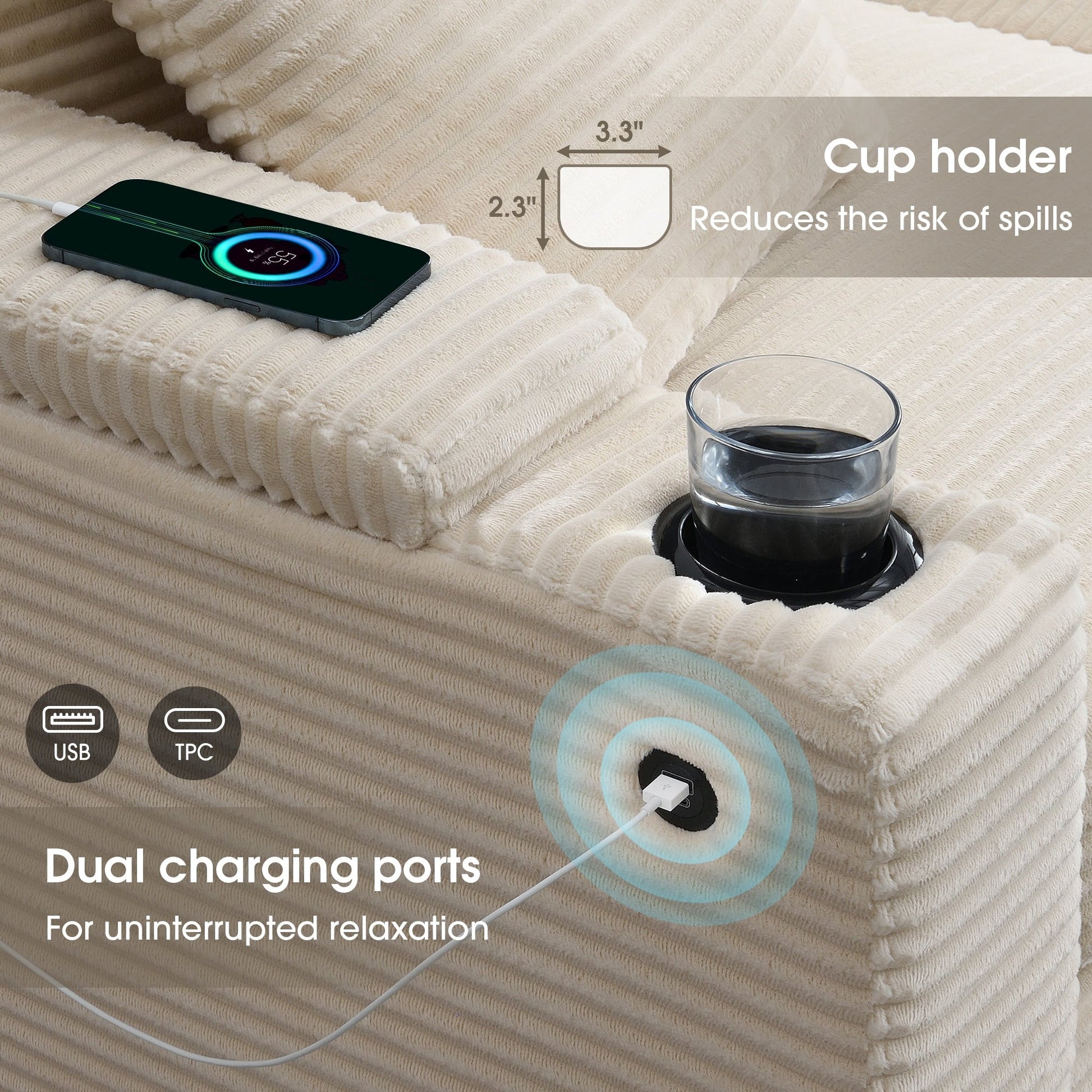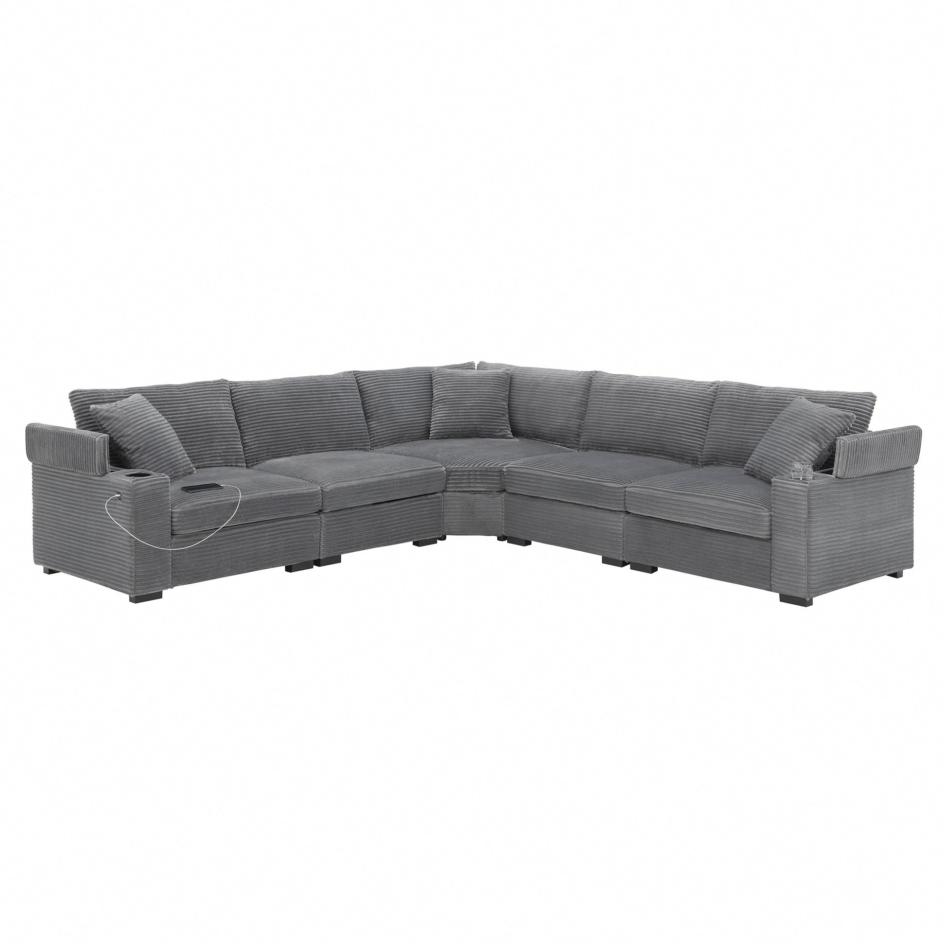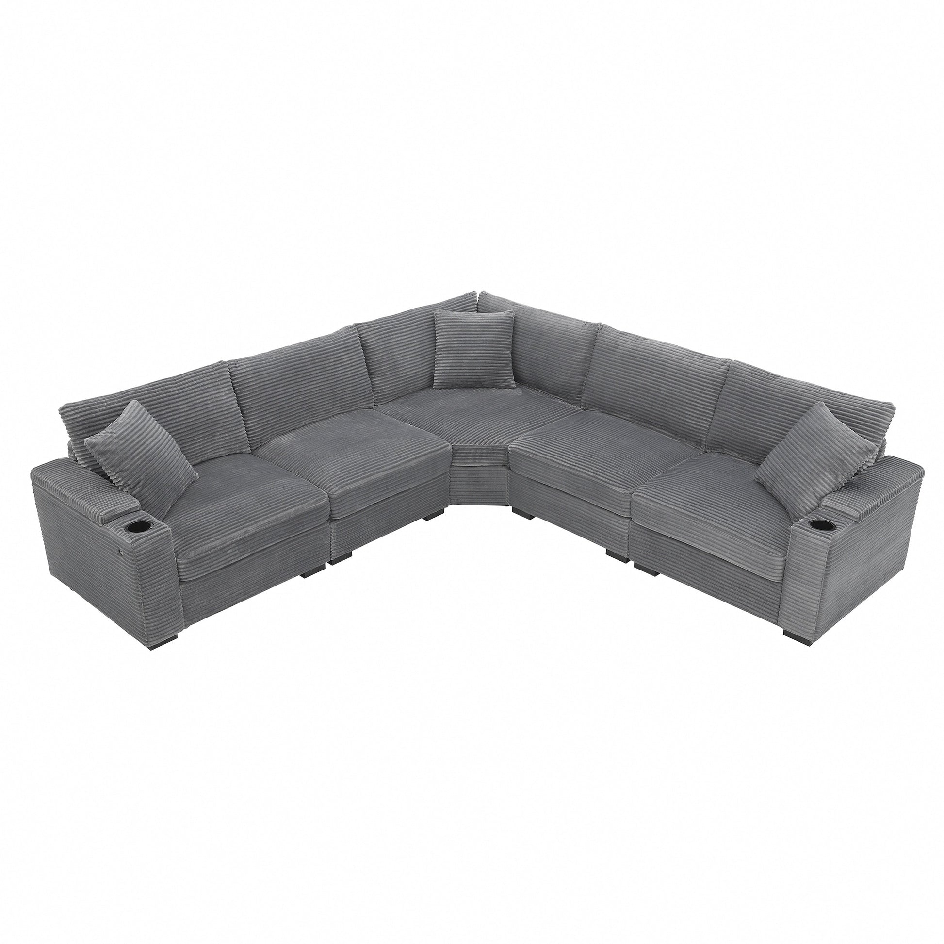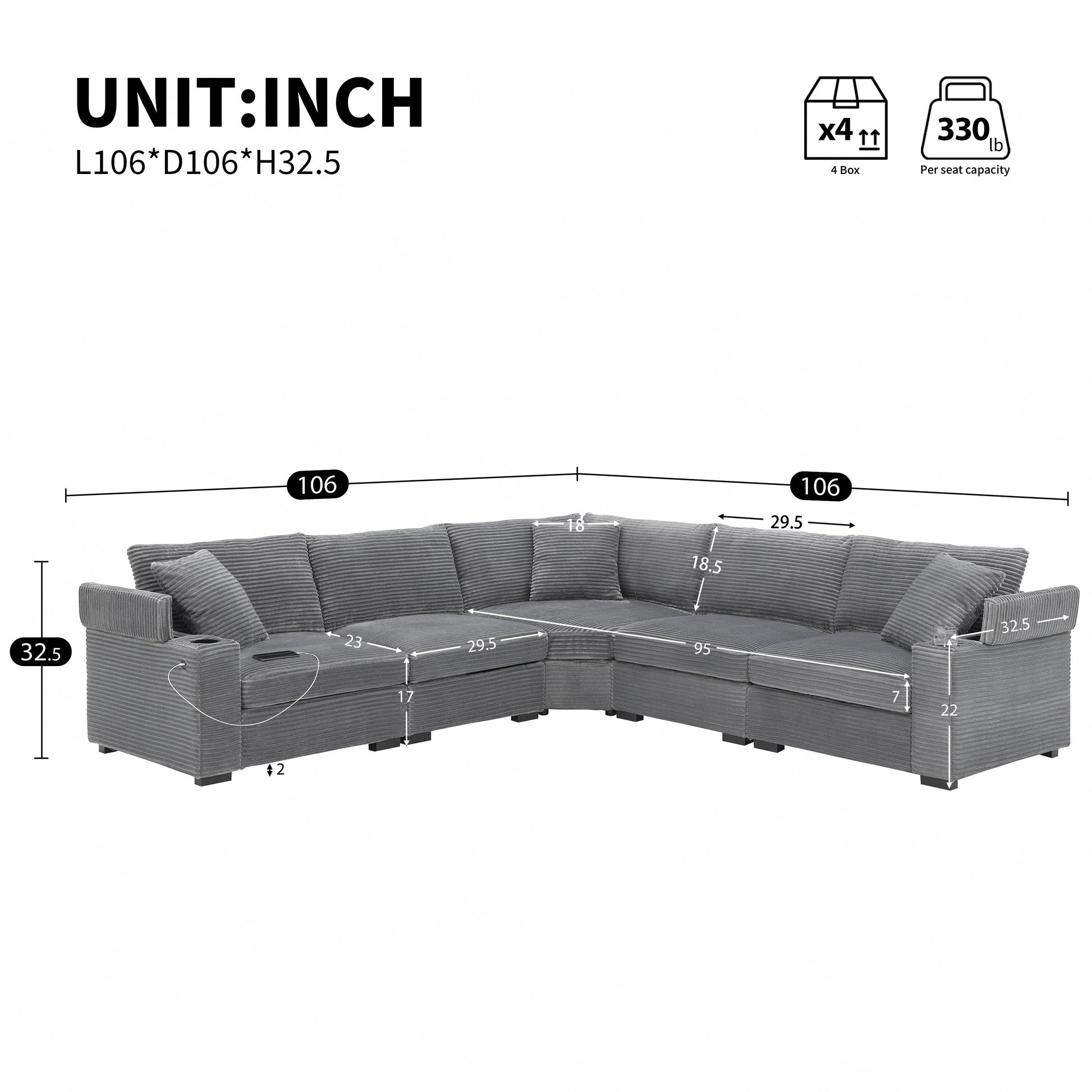 Modular Corduroy L-Shaped Sectional Sofa with Armrest Storage,...