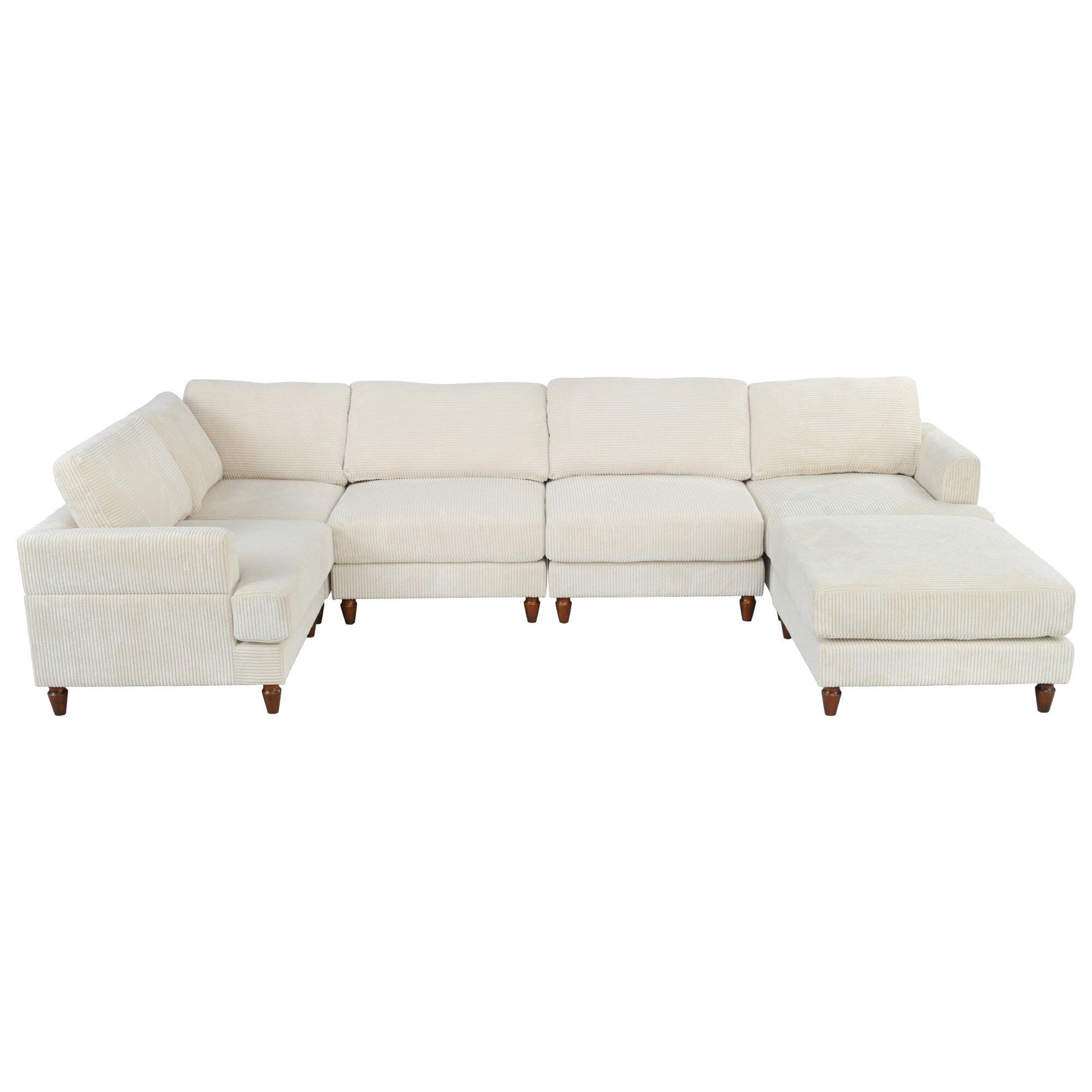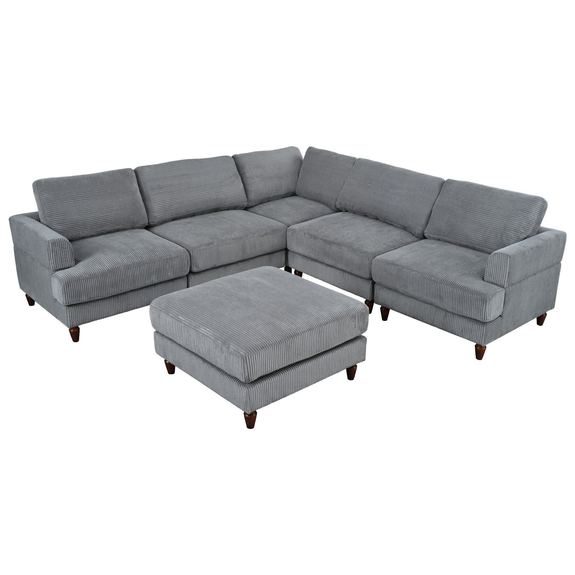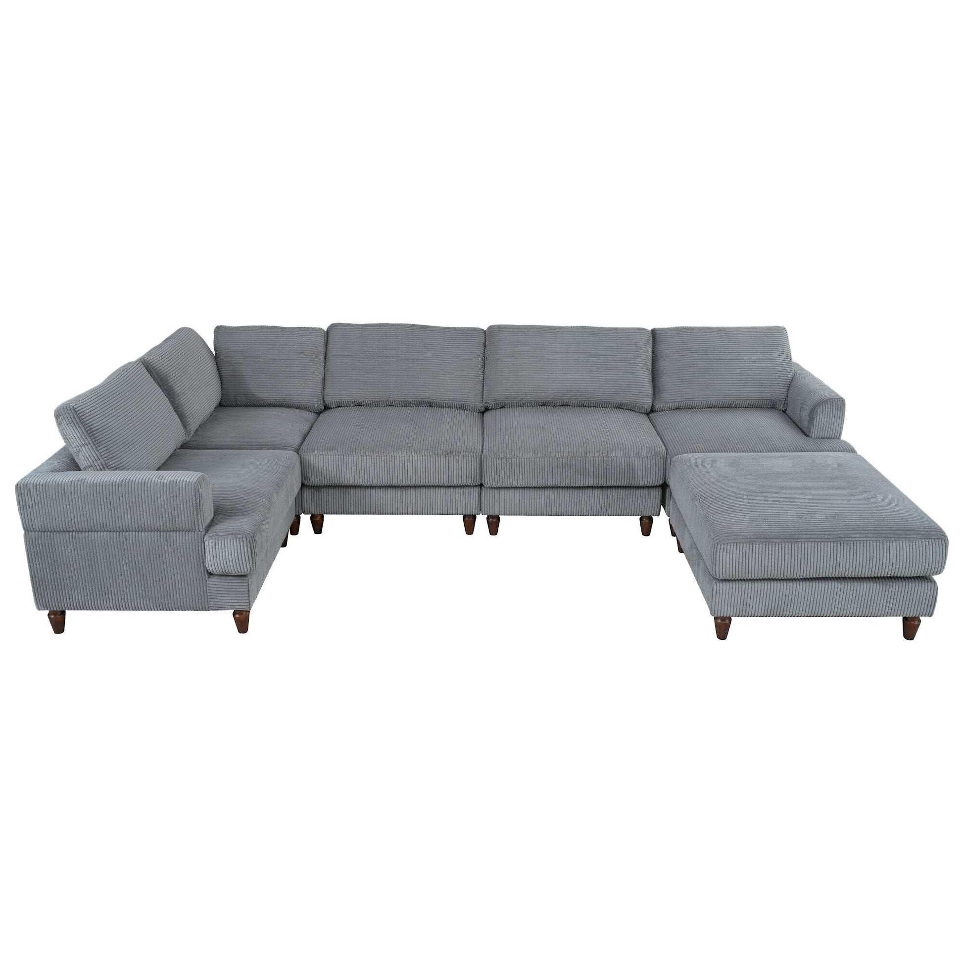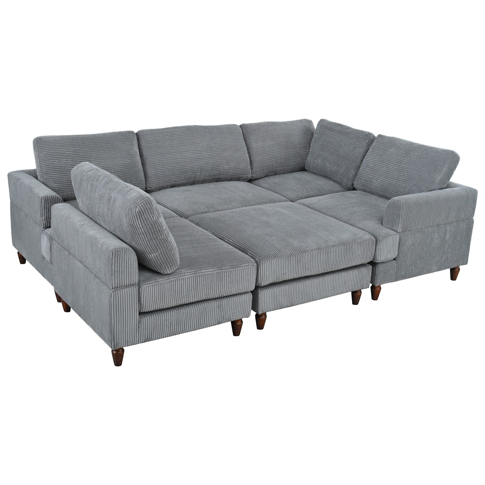 Modular L-Shaped Corduroy 6-Seater Sectional Sofa with Ottoman...
