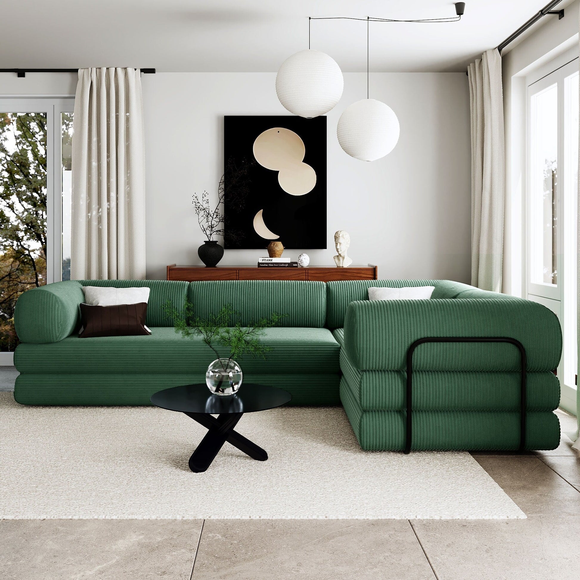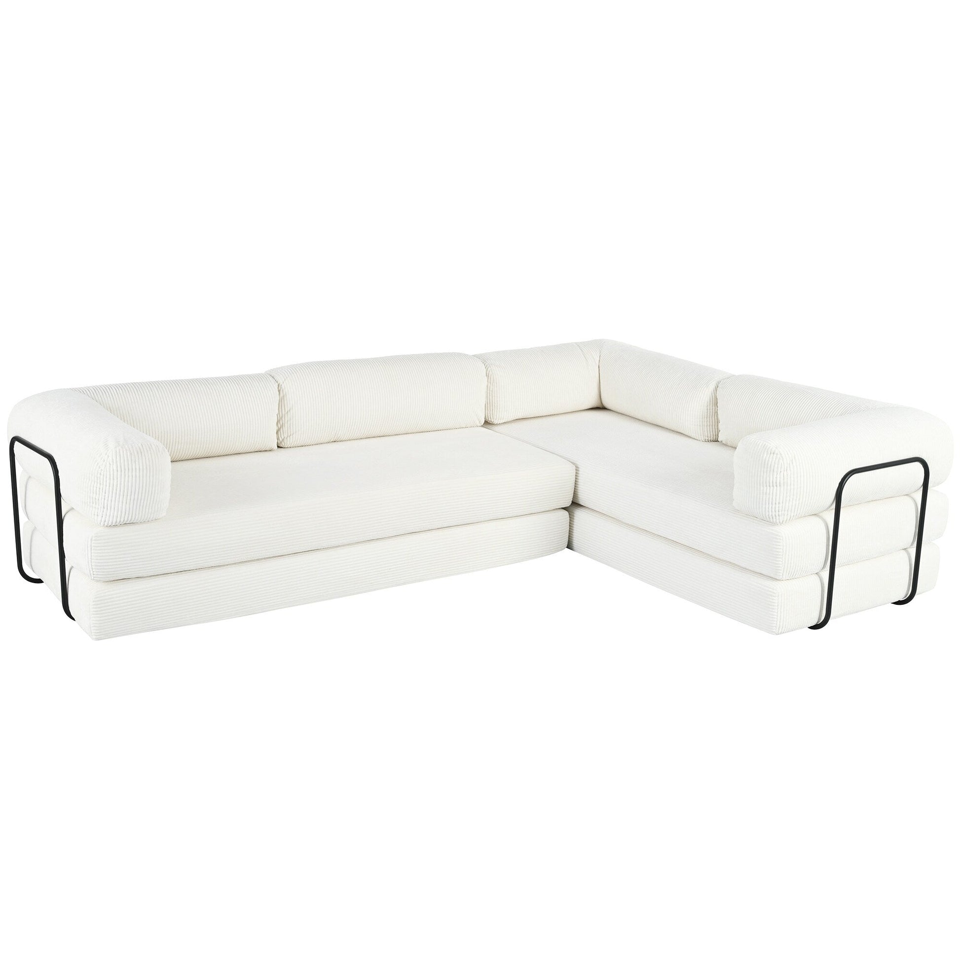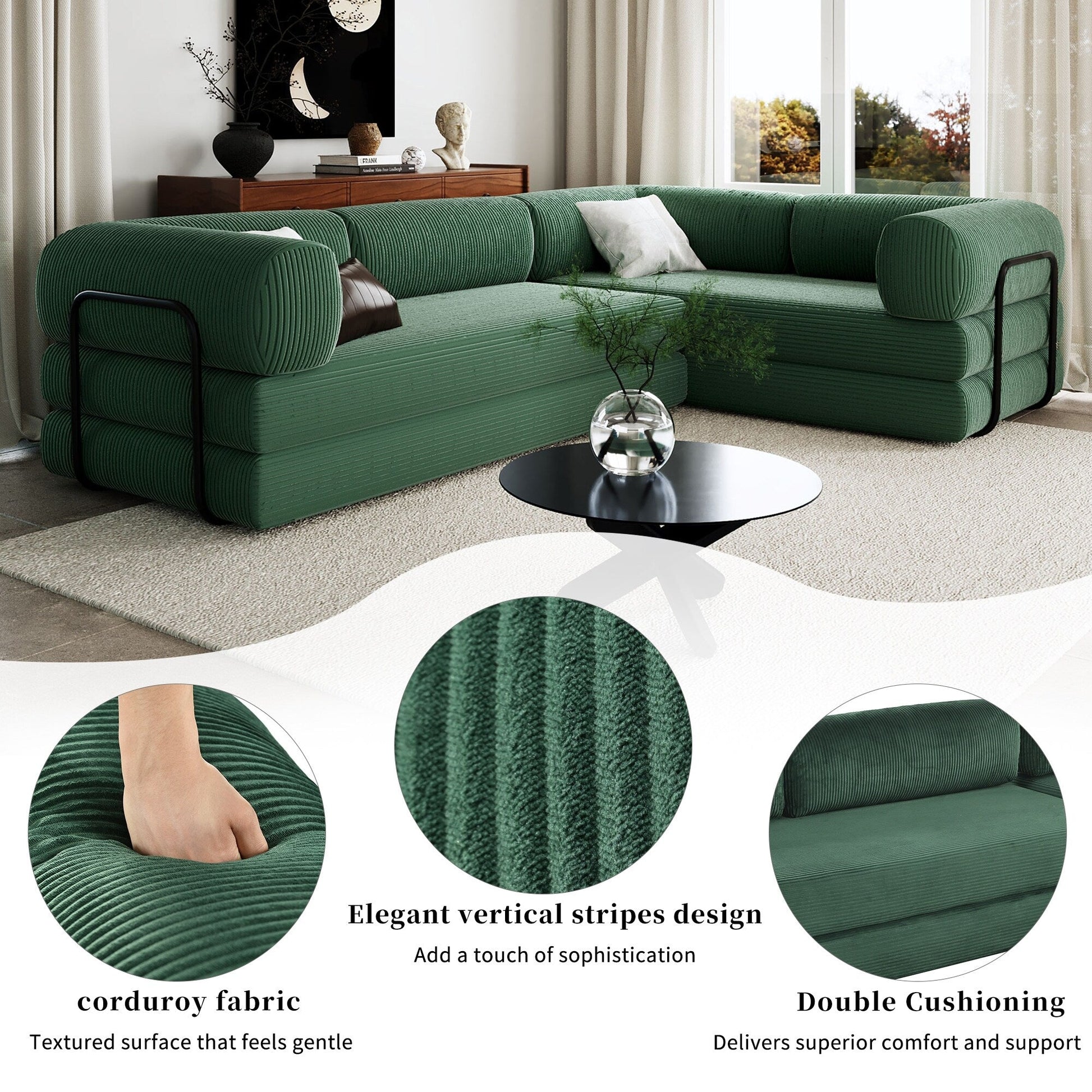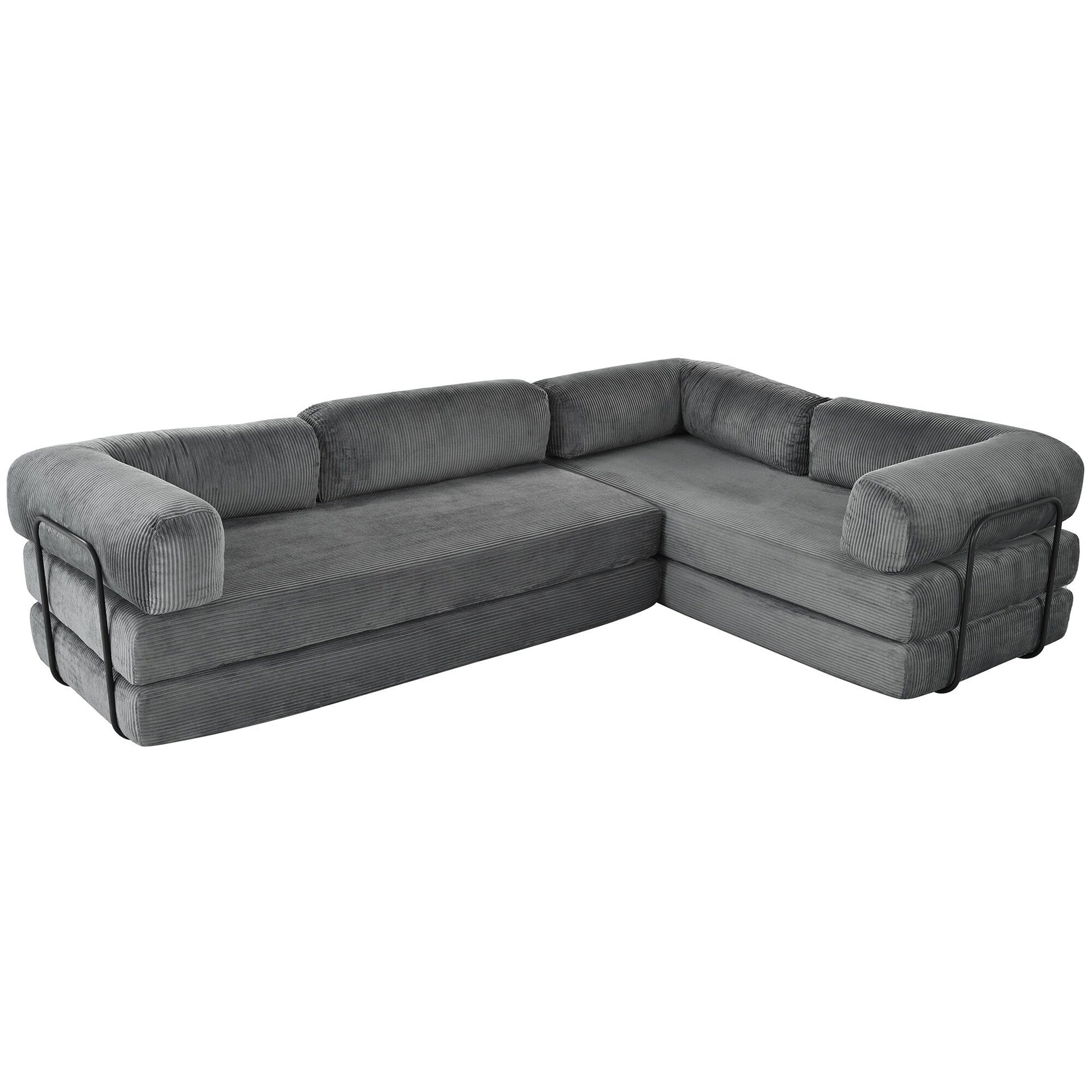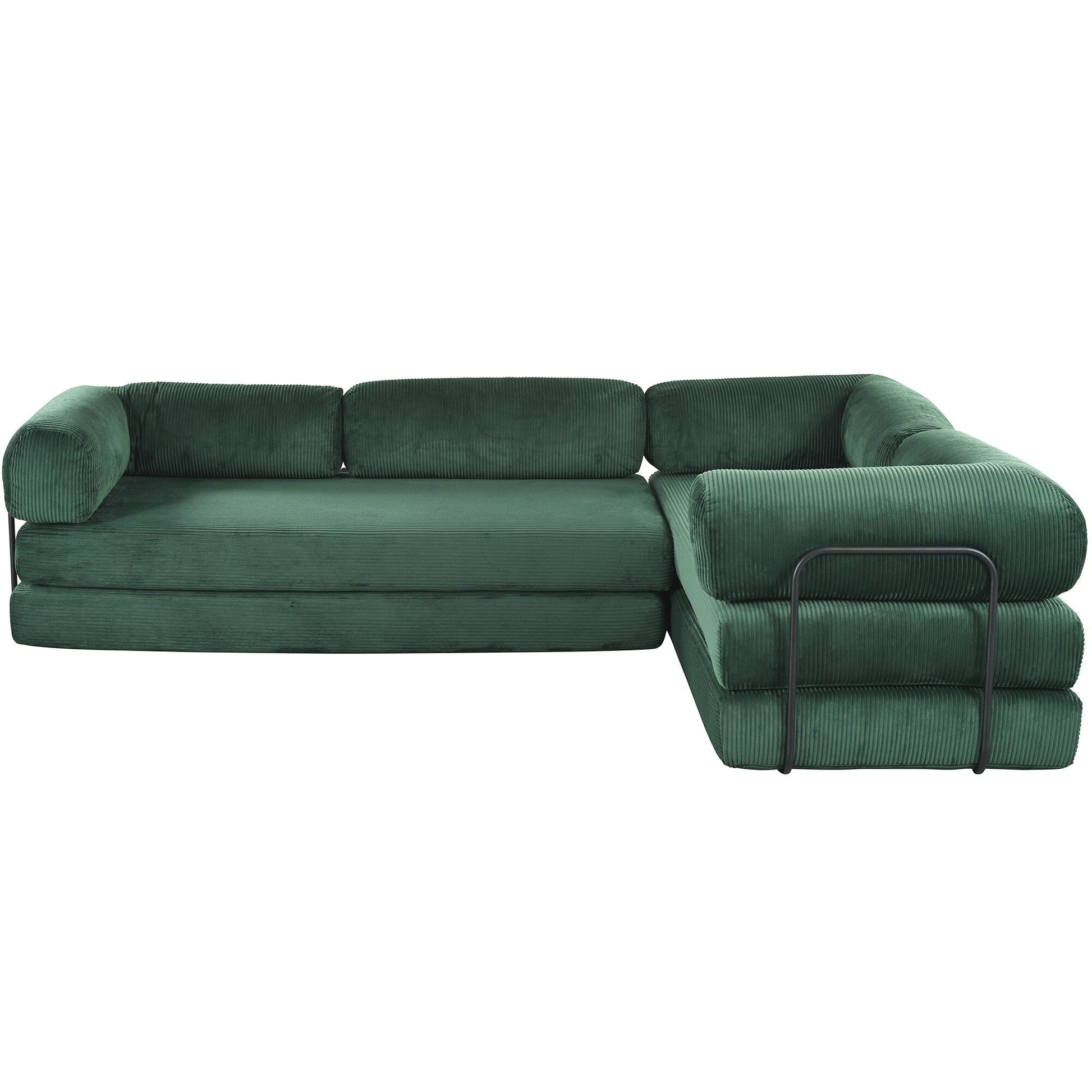Modular L-Shaped Corduroy Sofa Bed Convertible...