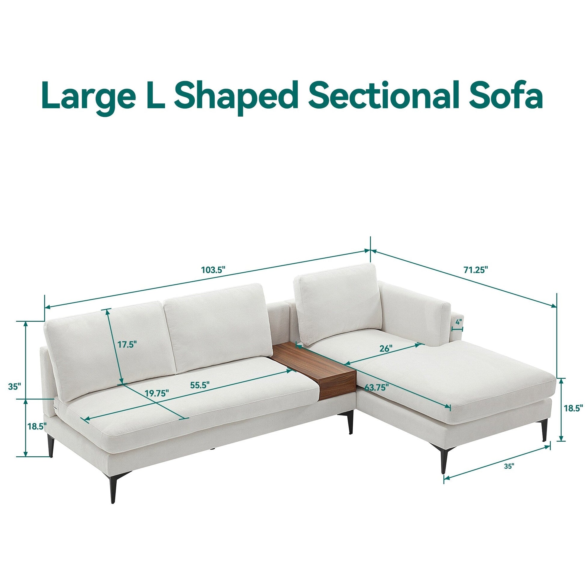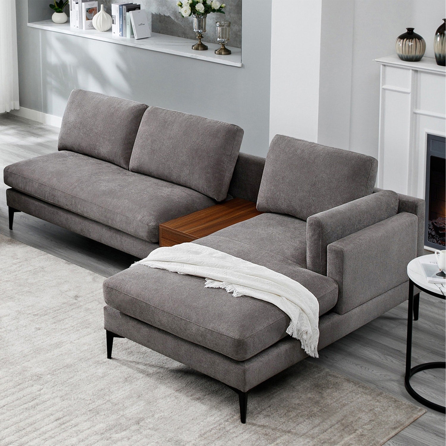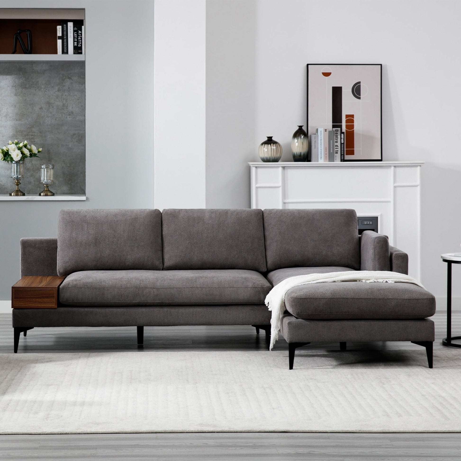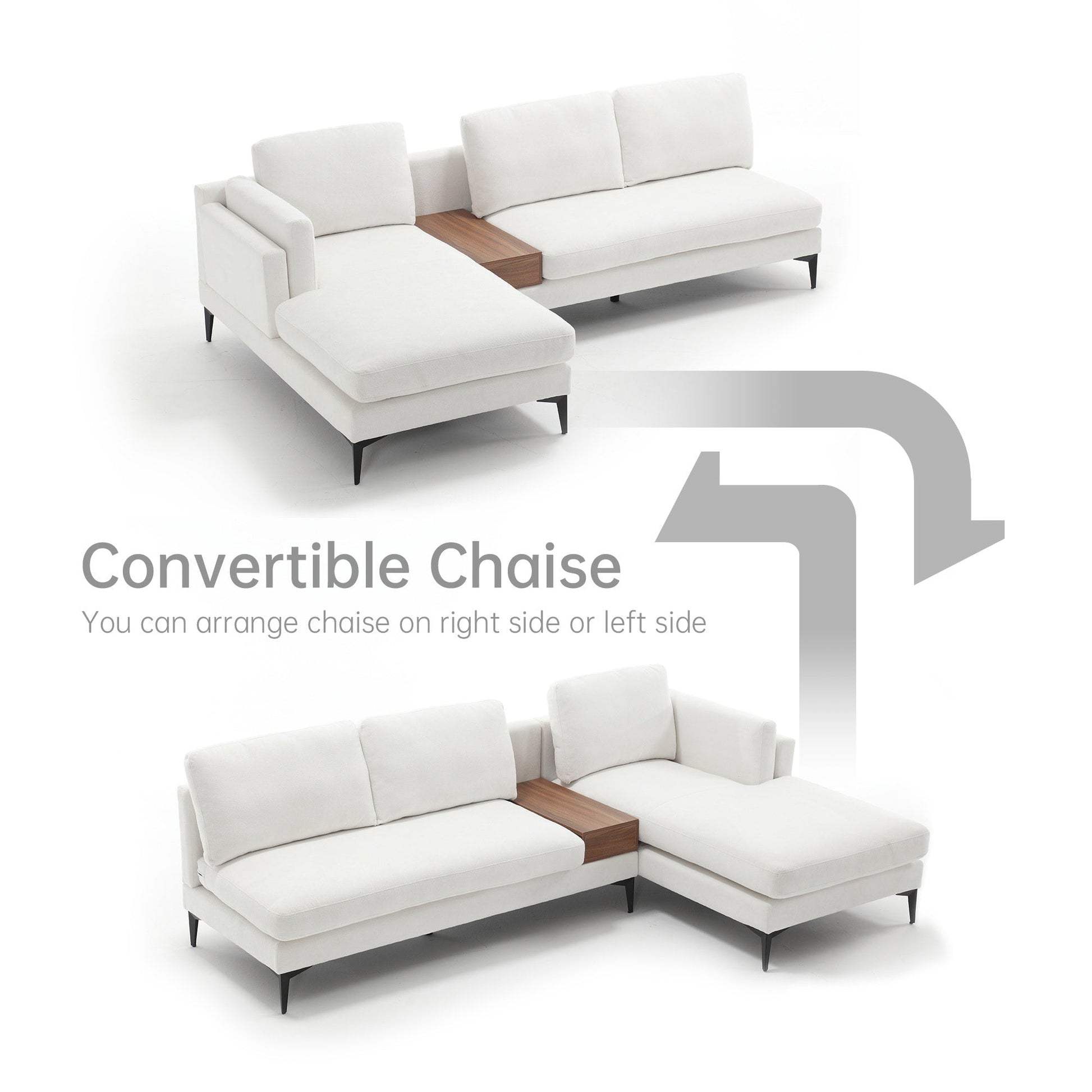 Modular L-shaped Sofa With a Reversible Design and Built-in Wooden Decorative Box