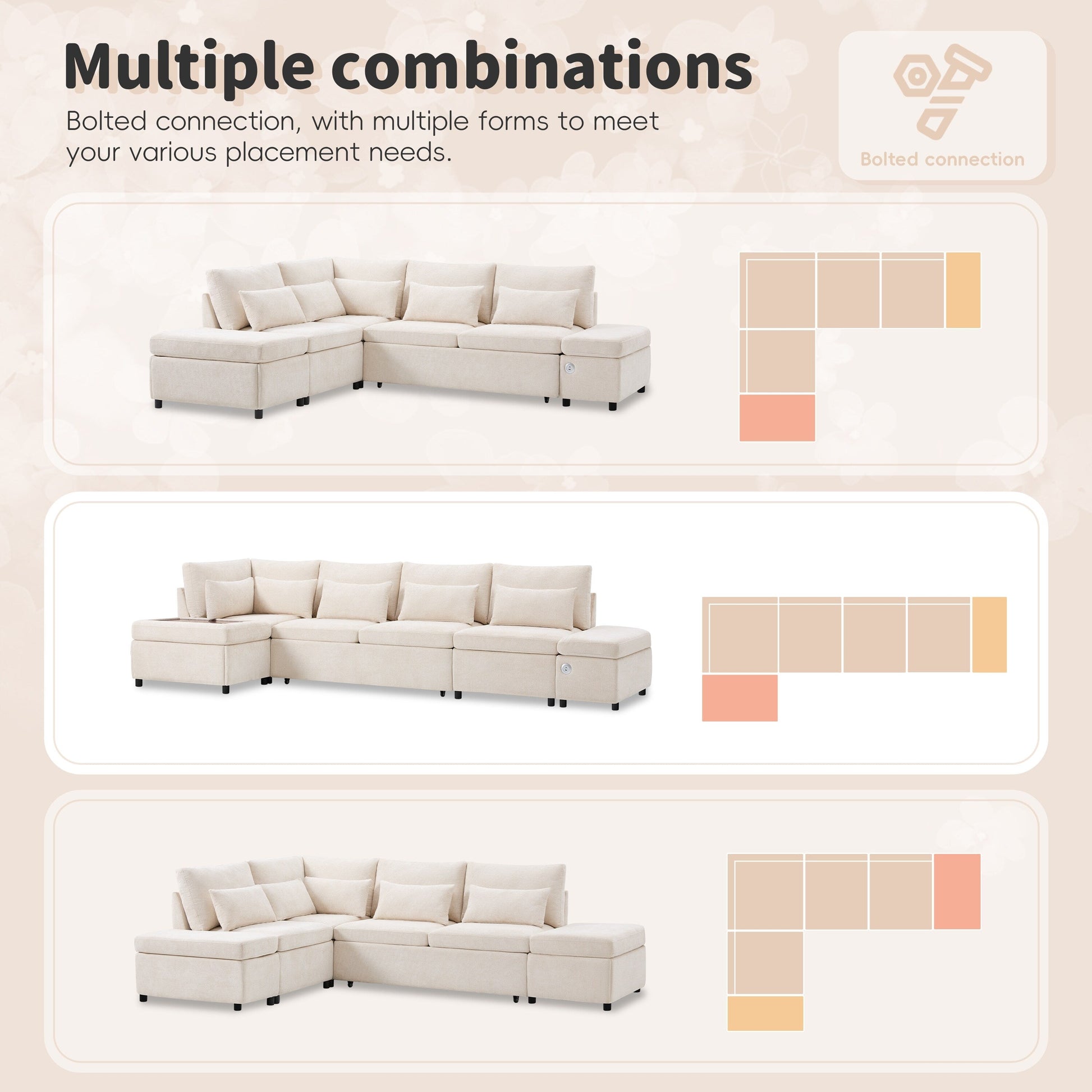 Modular Pull-Out Sectional Sofa Bed with Adjustable Charging...