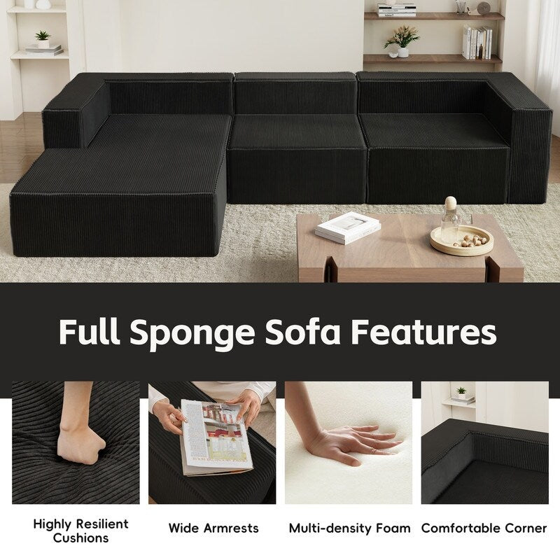 Corduroy Material: The elasticity of the corduroy material can effectively relieve the compression sofa from being compressed during use. Because corduroy has a certain degree of resilience, when the sofa is subjected to the weight of the human body, it can quickly return to its original state, reducing the deformation caused by prolonged compression.