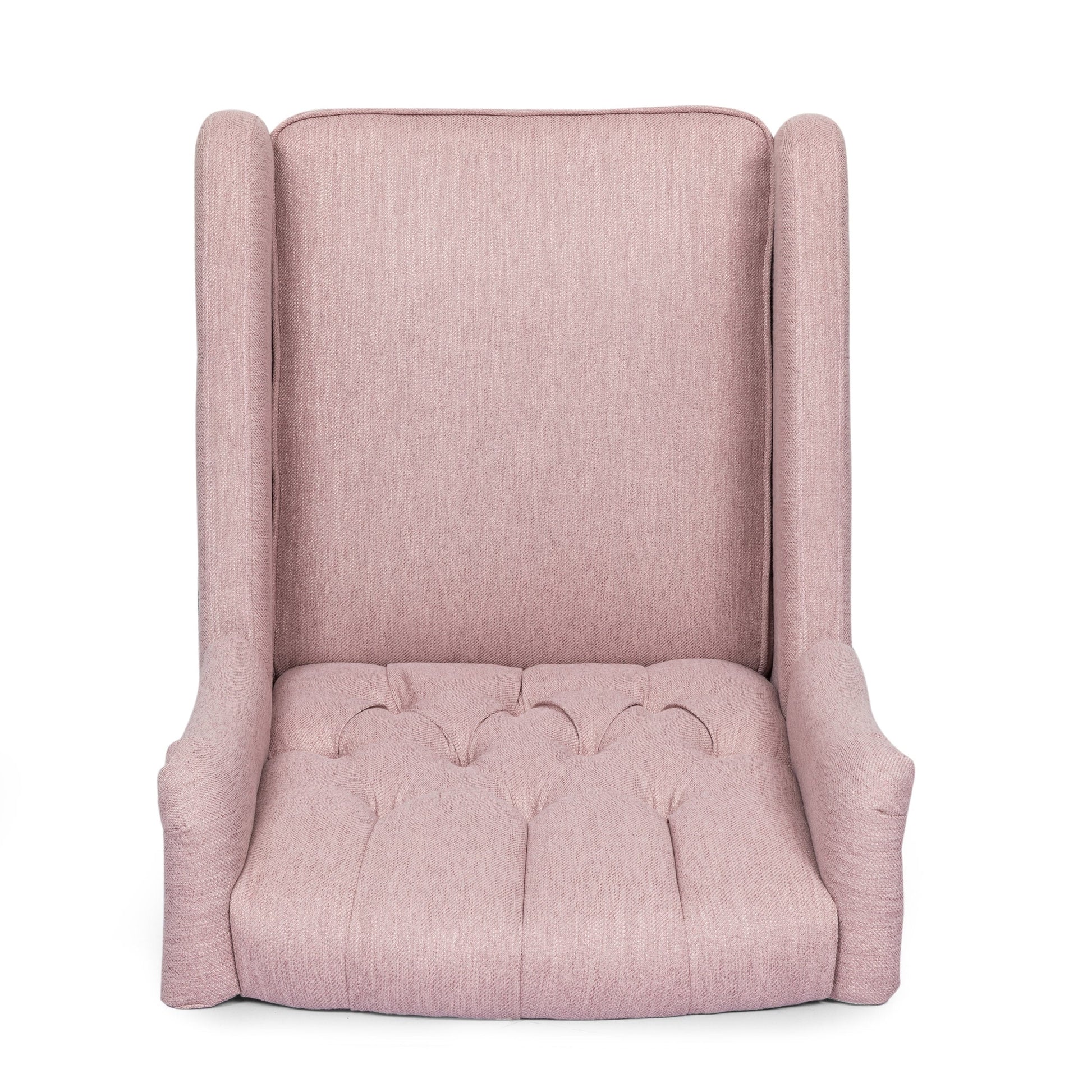 Whether you are settling back in your living room or are in need of stylish nursery seating, this recliner is sure to become your new favorite spot of leisure. Our charming recliner chair provides an incredibly high degree of coziness in an attractive package with its smooth upholstery and contemporary atmosphere. Featuring a graceful wingback design, button tufted diamond stitching, and a stunning nailhead trim, this exquisite recliner is perfectly complemented by its swivel function, allowing you to enjoy ultimate relaxation with little effort.