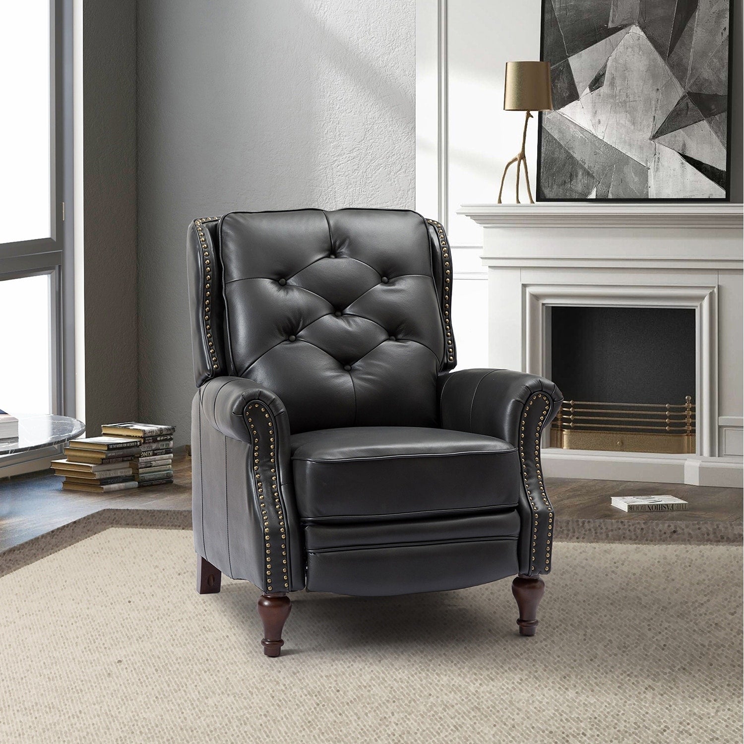 Classic Design: Our recliner features a button-tufted design with nailhead trims and a moderate-height back