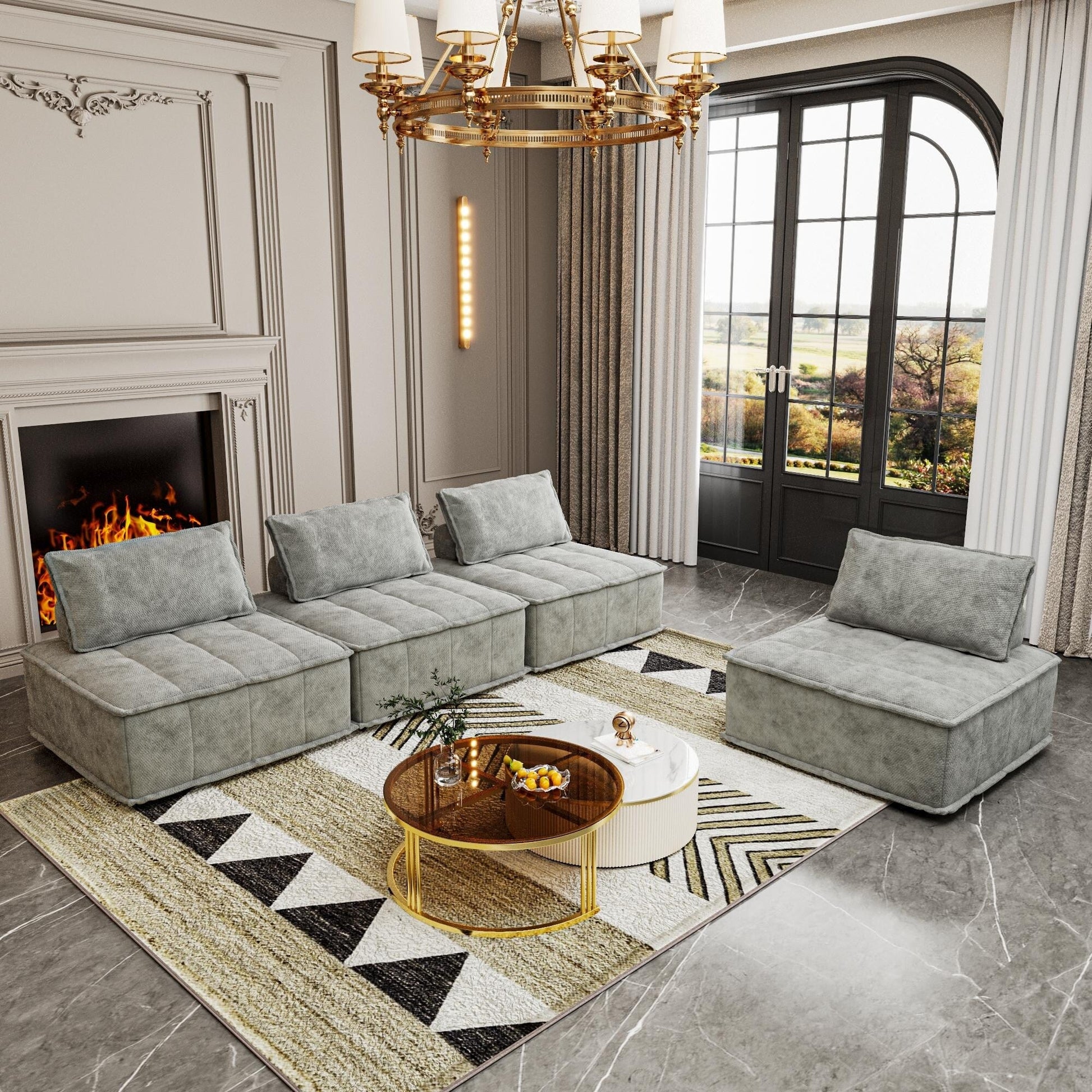 Oversized 4-piece Chenille Modular Square Sofa Set with High-Density Foam Cushions, Free Combination