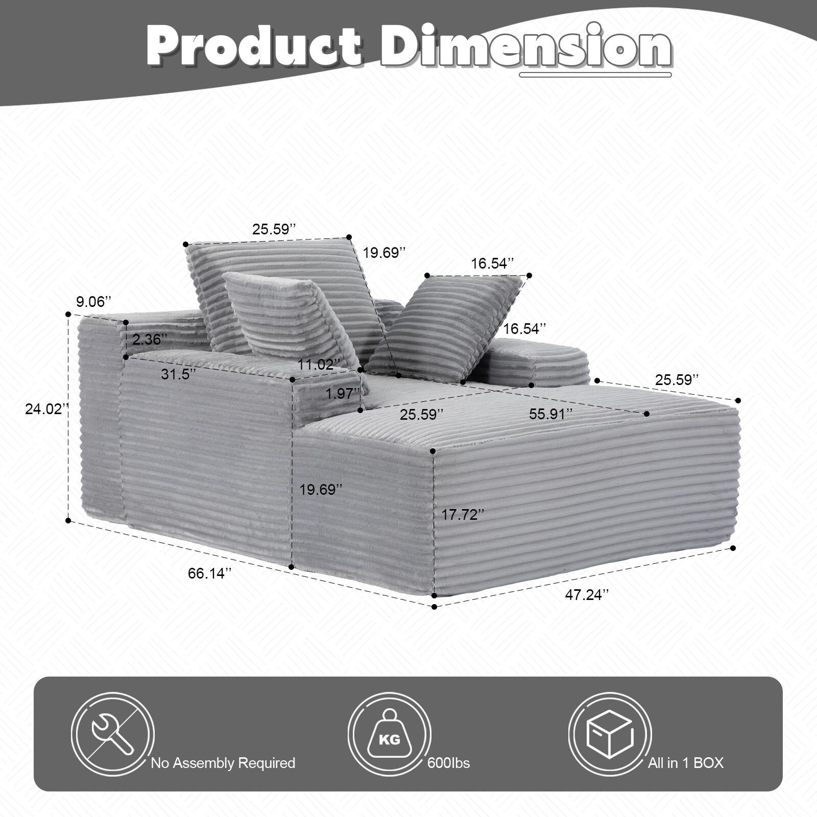 Oversized Chaise Lounge Cloud Couch Plush Corduroy Sleeper Sofa Daybed with Pillows for Living Room No Assembly
