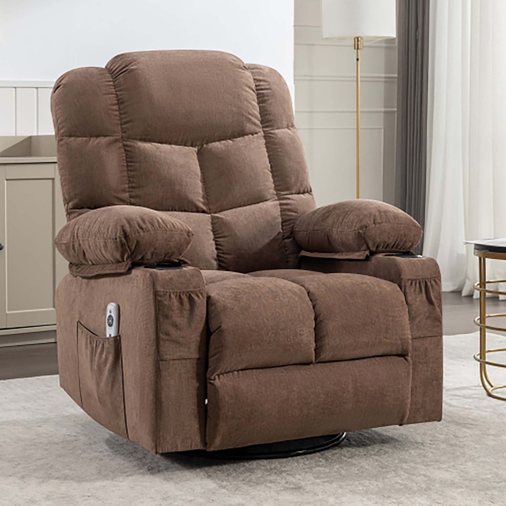 Oversized Massage Rocker Recliner Chair with 2 Cup...