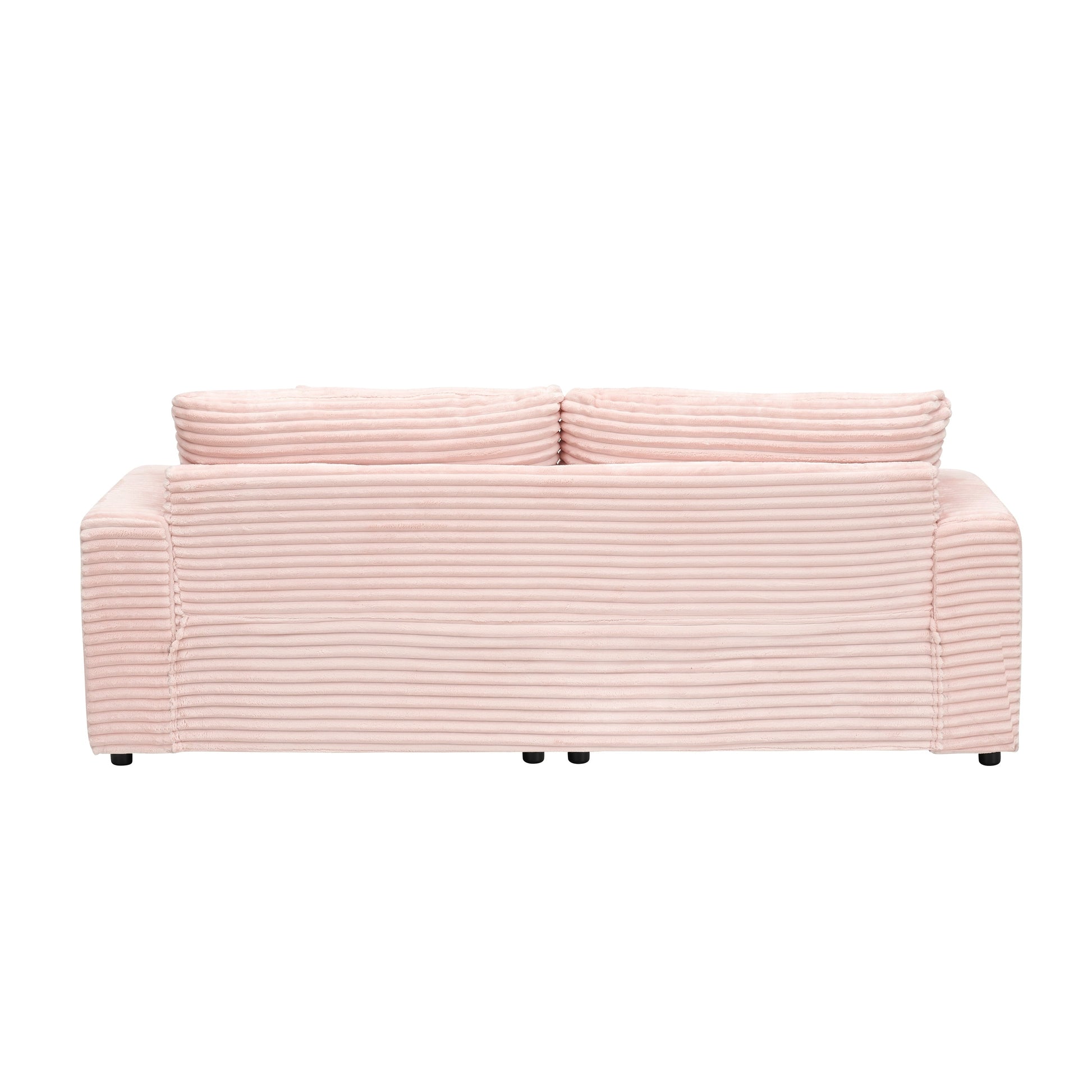 Pink Modern 79.3 Corduroy 3-seater Sofa with 4 Matching Toss Pillows and Individual Spring Cushion for Living Room