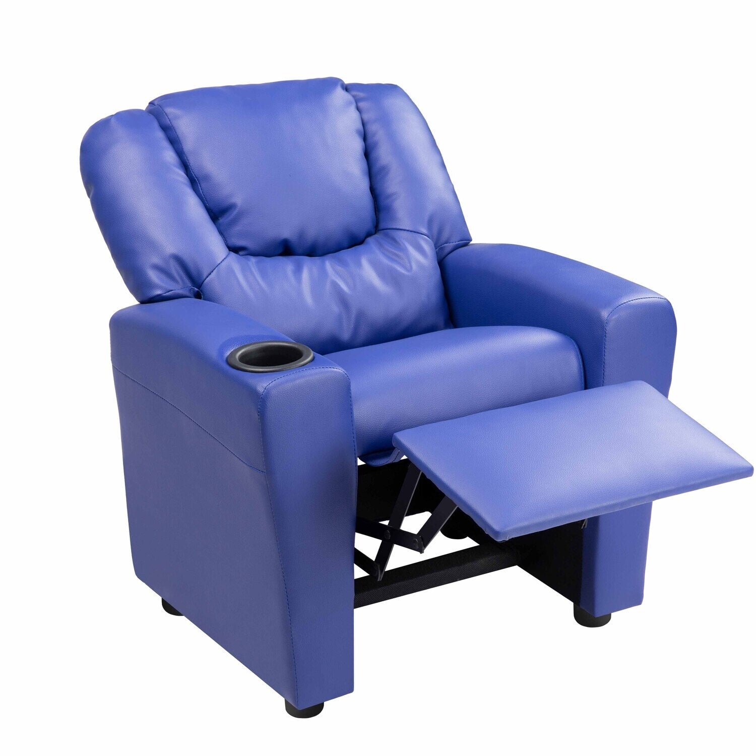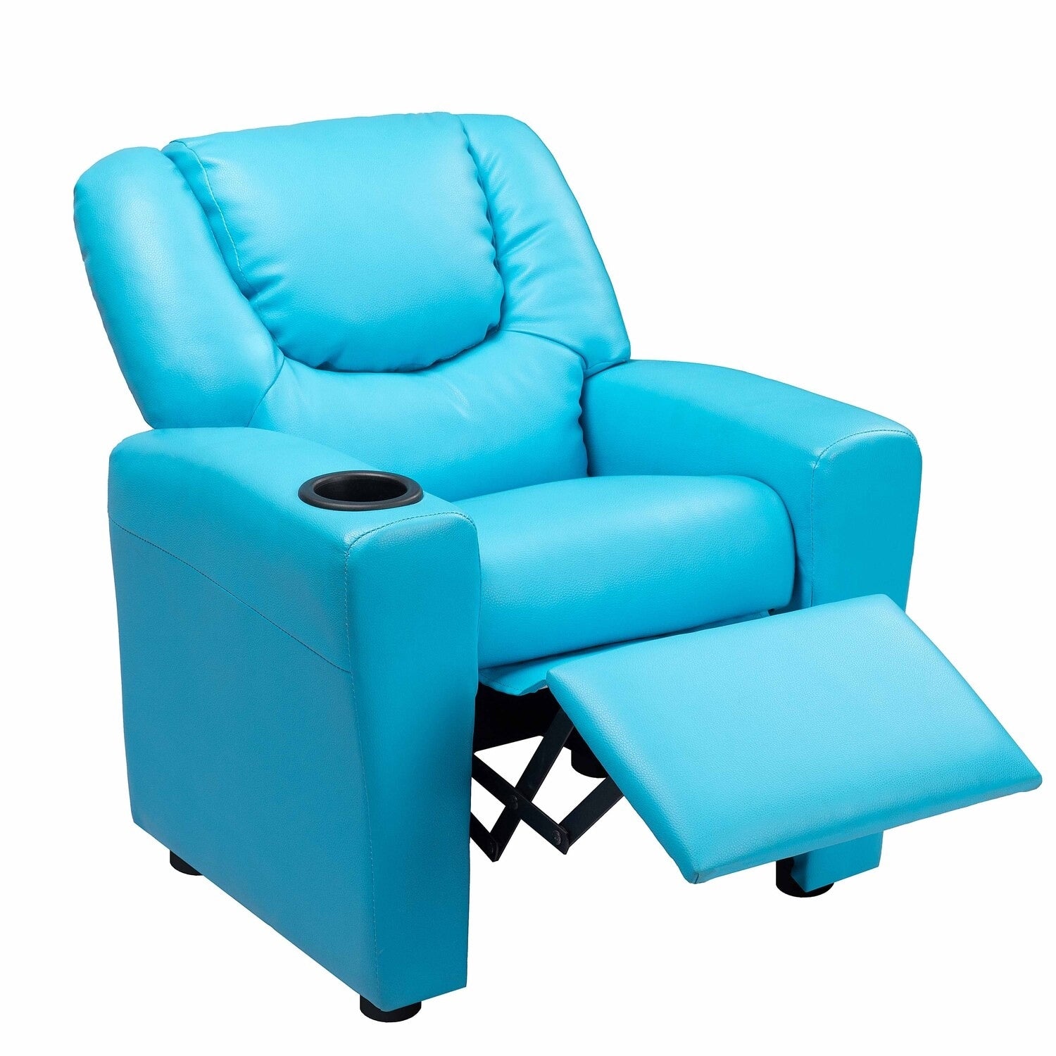 PVC Kids Recliner Chair with Push-Back Reclining Function, Cup Holder, and Comfortable Footres
