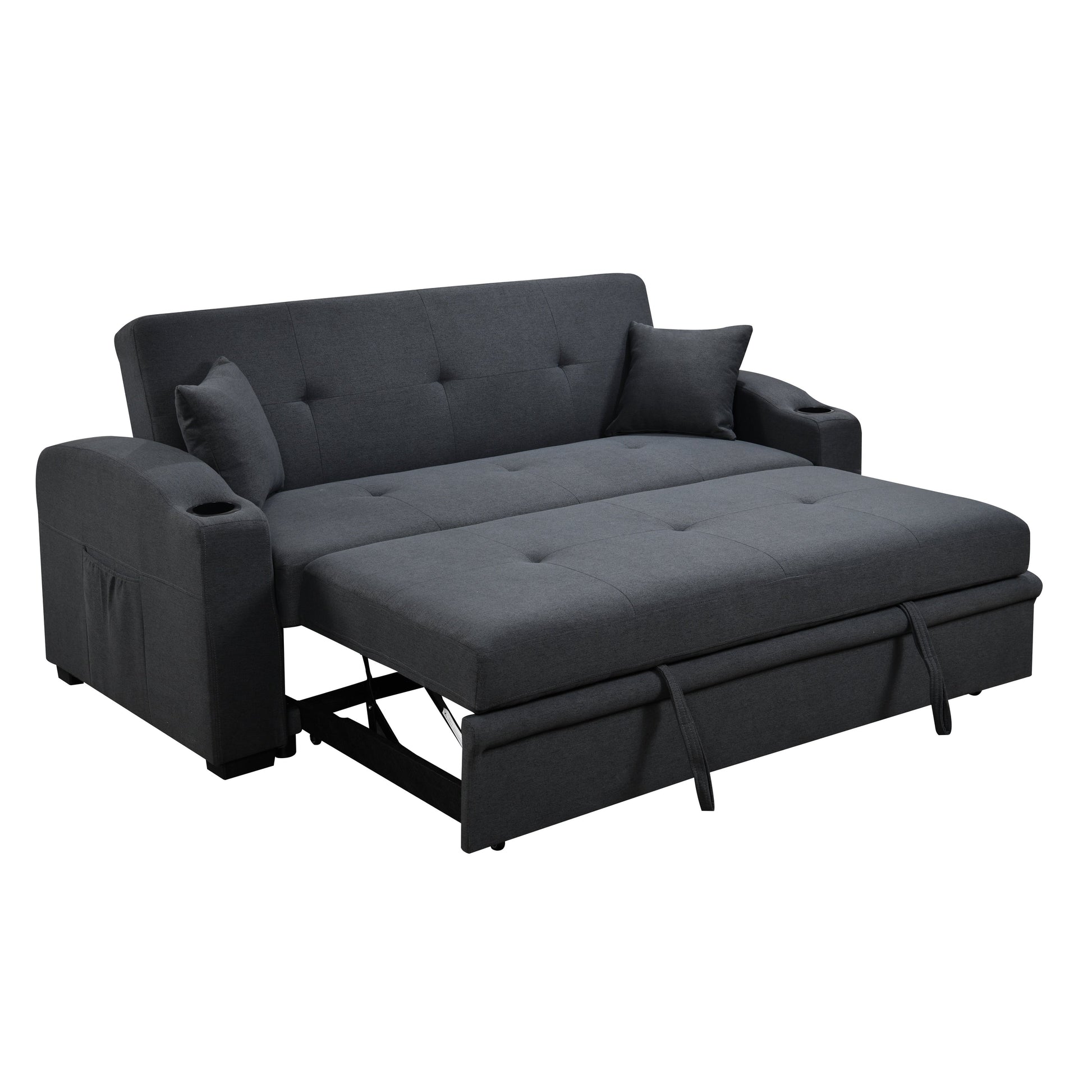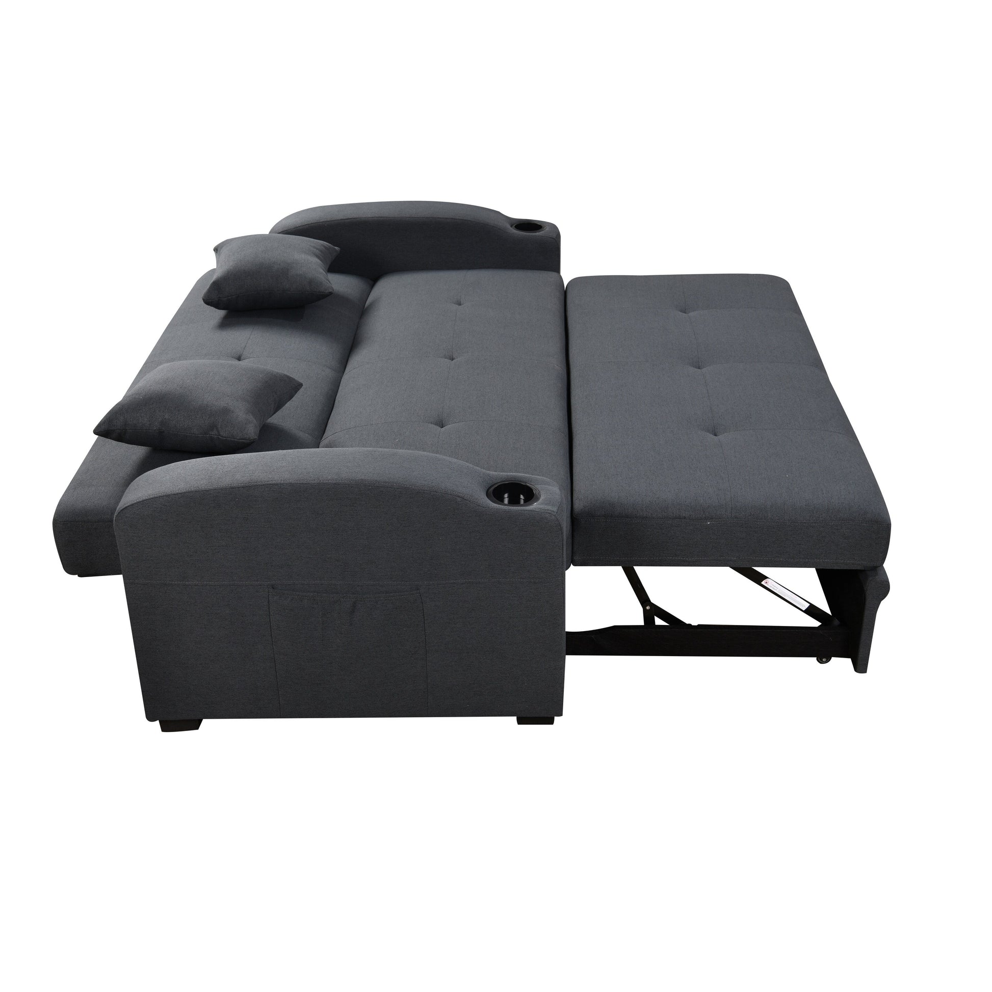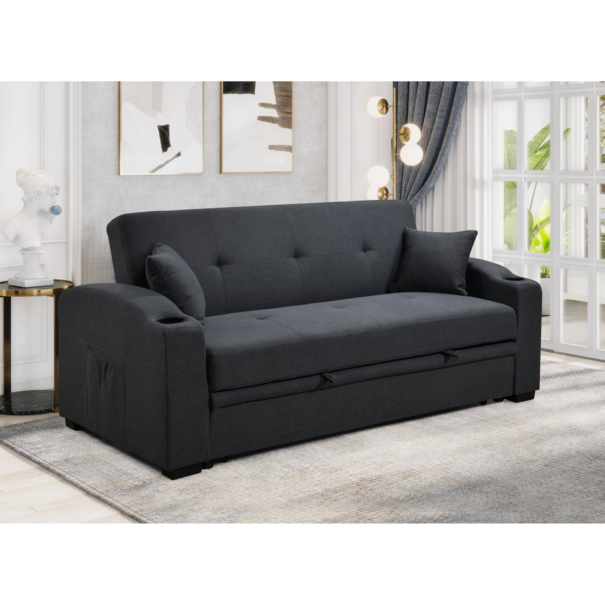 Roomfitters 75 Inch 3 in 1 Convertible Modern Sofa with Convenient Pull Out Bed, Reclining Backrest, Cup Holders, Pillows
