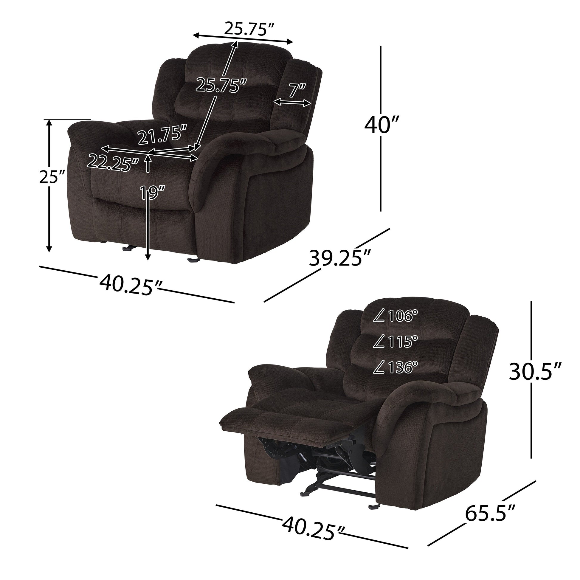 Roomfitters Classic Design, Brown Plush Fabric, Glider Recliner