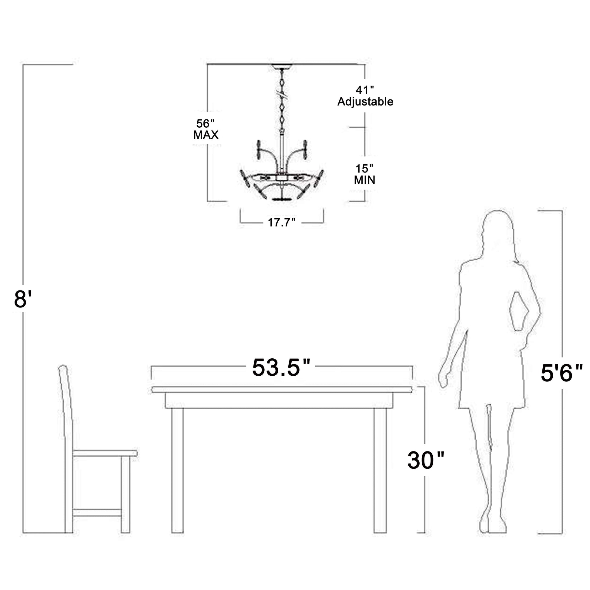 • Max hanging height (from ceiling to the bottom of the light fixture): 56 inches, which can be shortened.